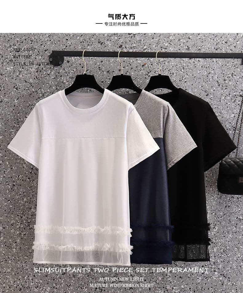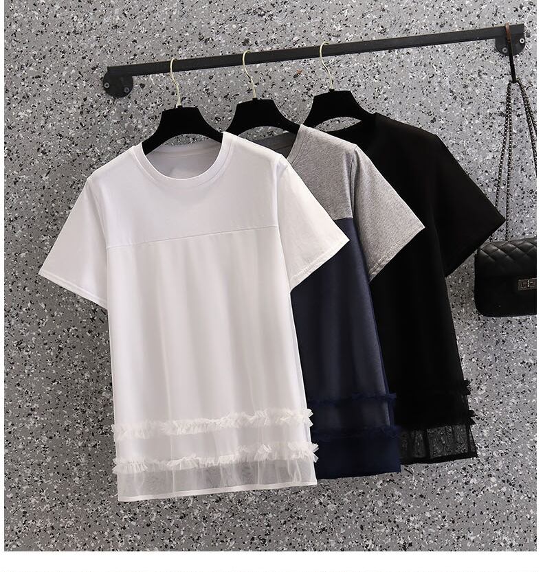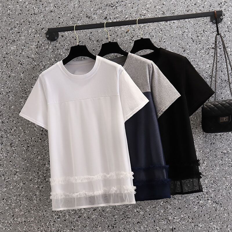 ラージサイズの婦人服2022年夏の新しいファットシスターウエスタンスタイルのルーズな年齢を減らす気質のカラーマッチングカジュアルニットTシャツの女性 大きめサイズ サマー 夏物 8884157459390493