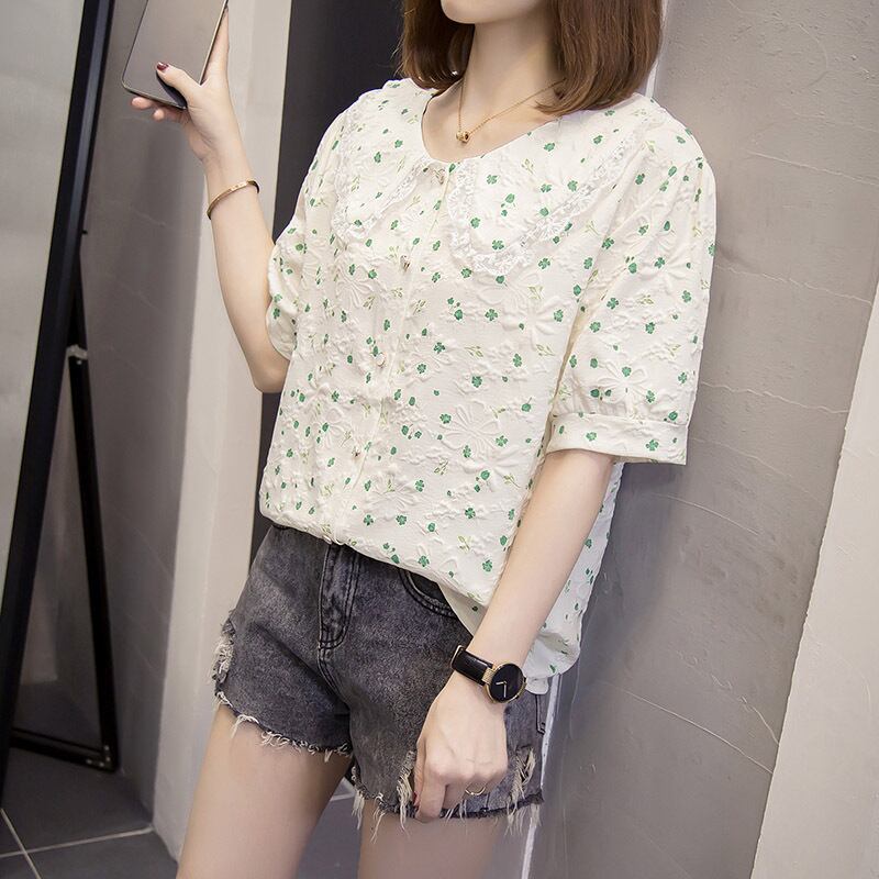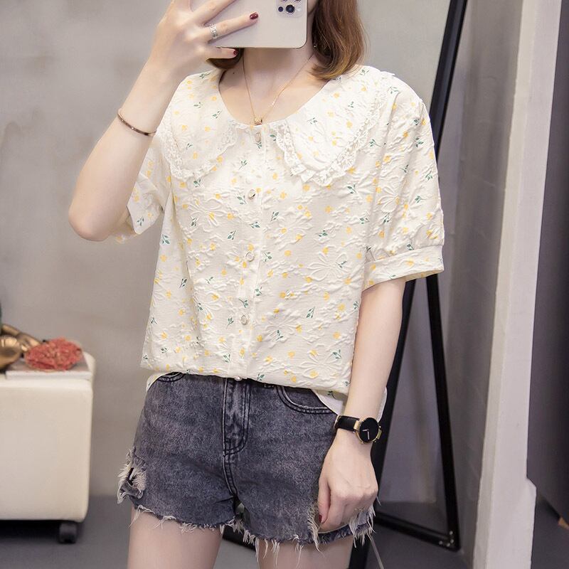 大きいサイズの婦人服2022年夏の新しい太った姉妹小さい新鮮なフランスのニッチ人形の襟半袖花柄シャツの女性 大きめサイズ サマー 夏物 888417288819374