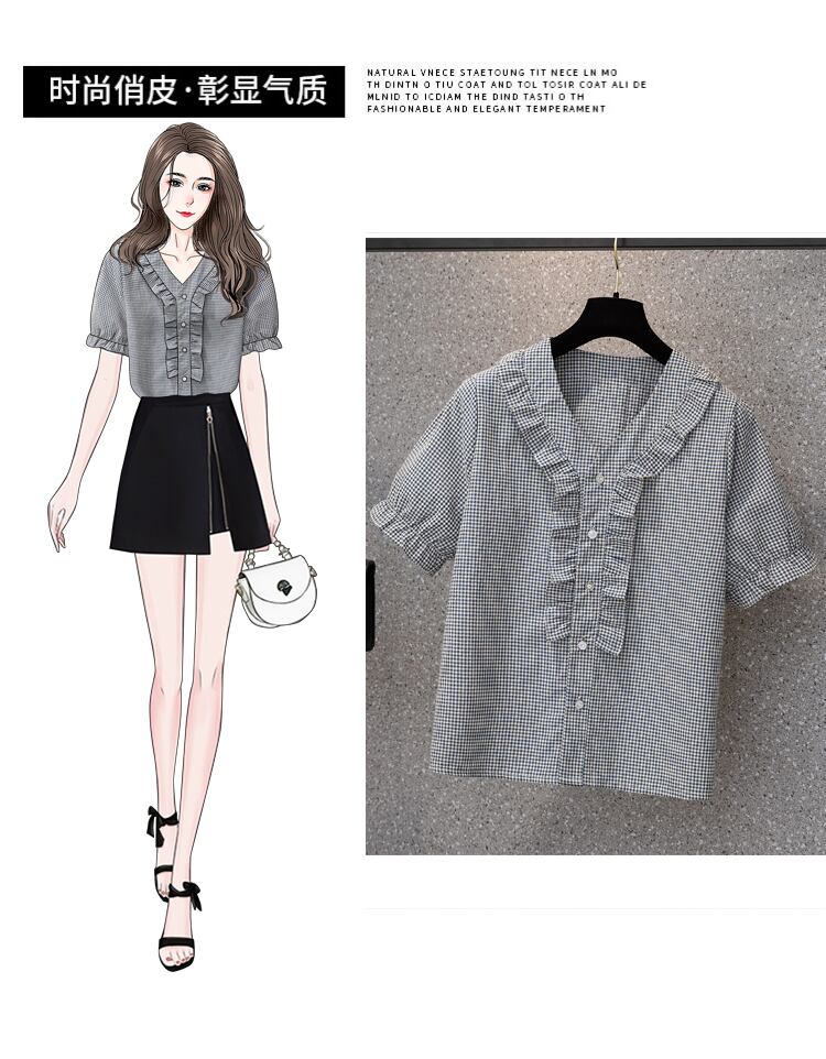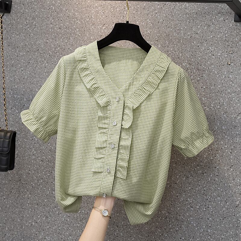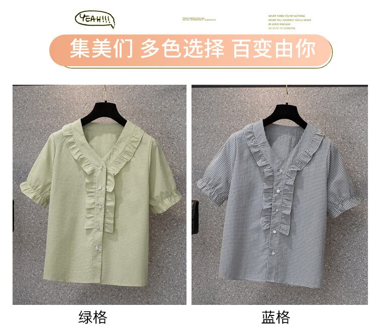 大きいサイズの婦人服2022年夏の新しい太った姉妹カジュアルルーズ、薄い、気質、年齢を減らす、オールマッチの無地のシャツの女性 大きめサイズ サマー 夏物 ソリッドカラー 888417167037546
