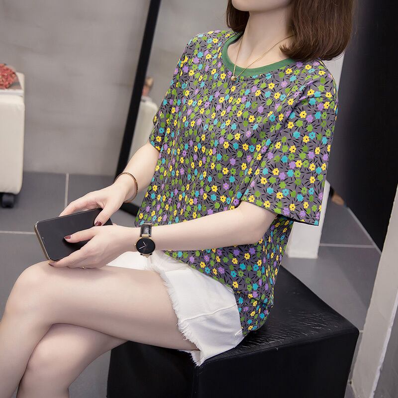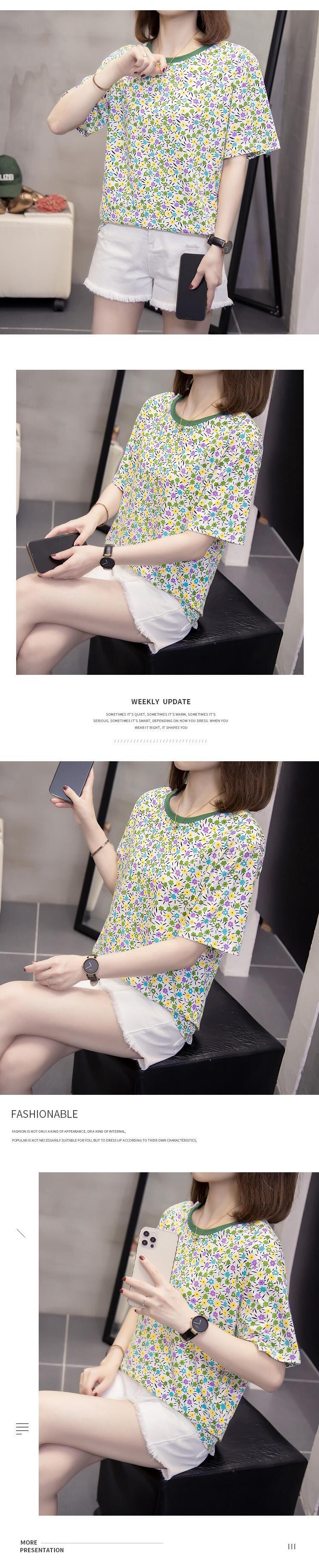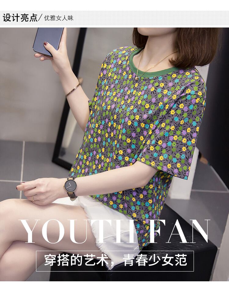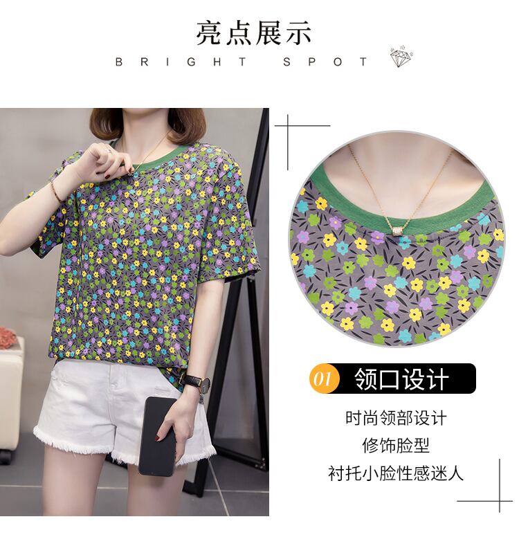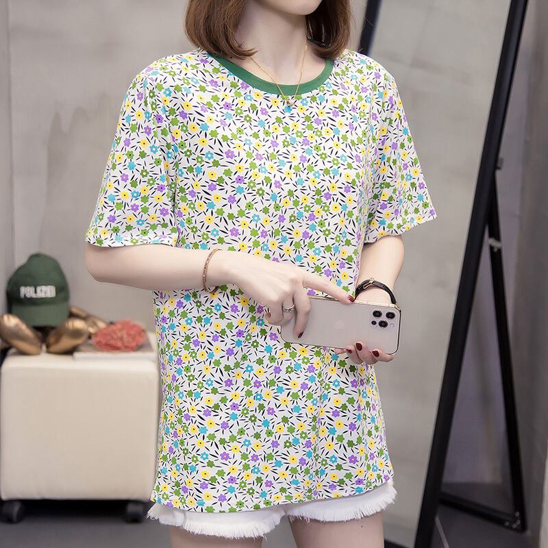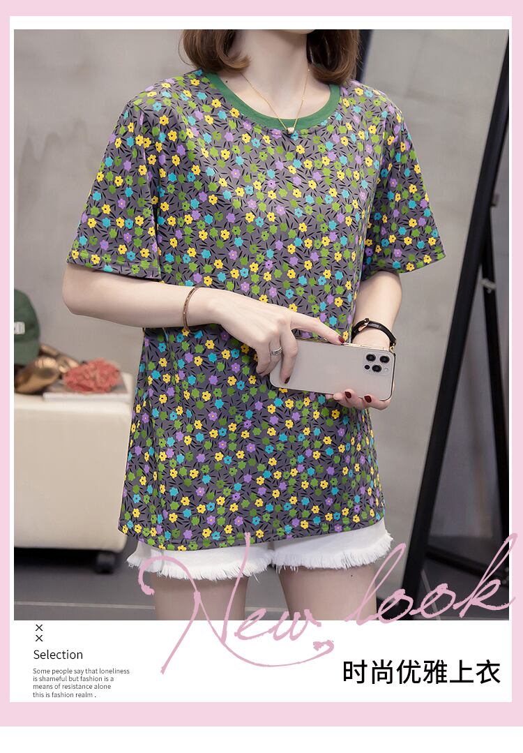ラージサイズの婦人服2022年夏の新作ファットシスターデザインセンスレトロフラワープリントフレンチTシャツウエスタンスタイルトップ 大きめサイズ サマー 夏物 フラワーデザイン 8884115339491618
