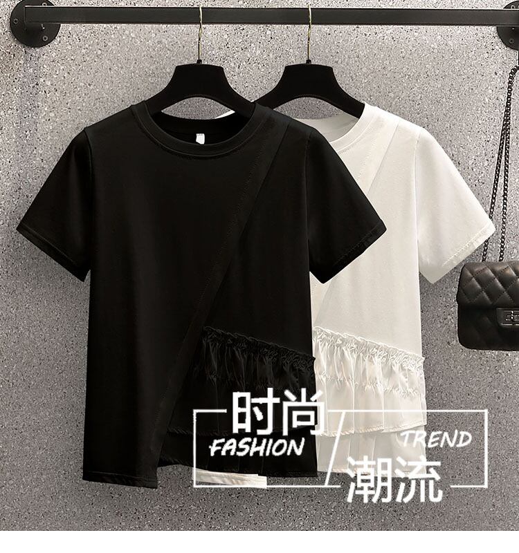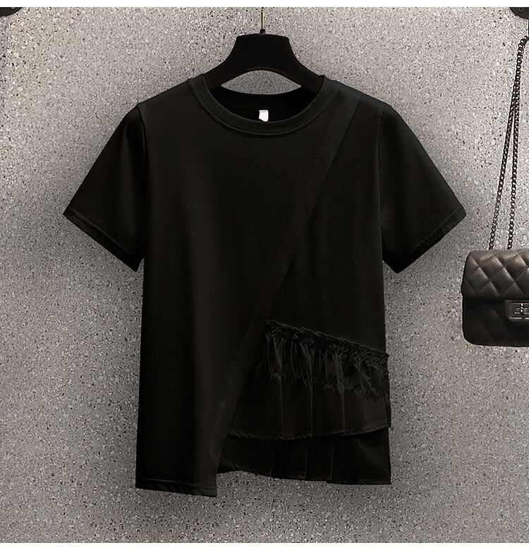 ラージサイズの婦人服2022年夏の新しいファットシスターファッションカジュアルベリーカバーステッチ半袖ルーズオールマッチTシャツの女性 大きめサイズ サマー 夏物 8884126560129525