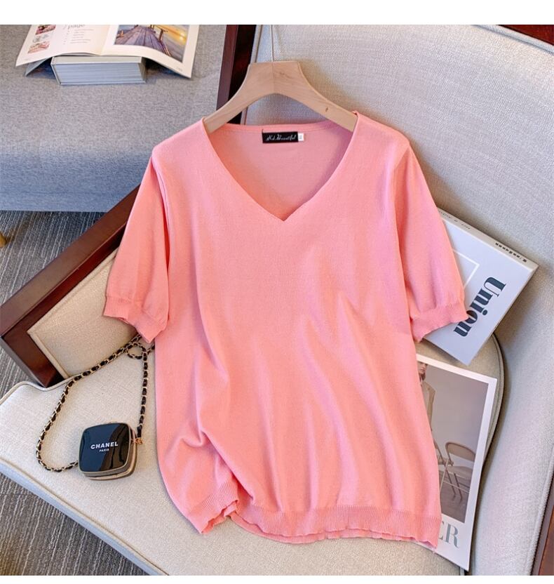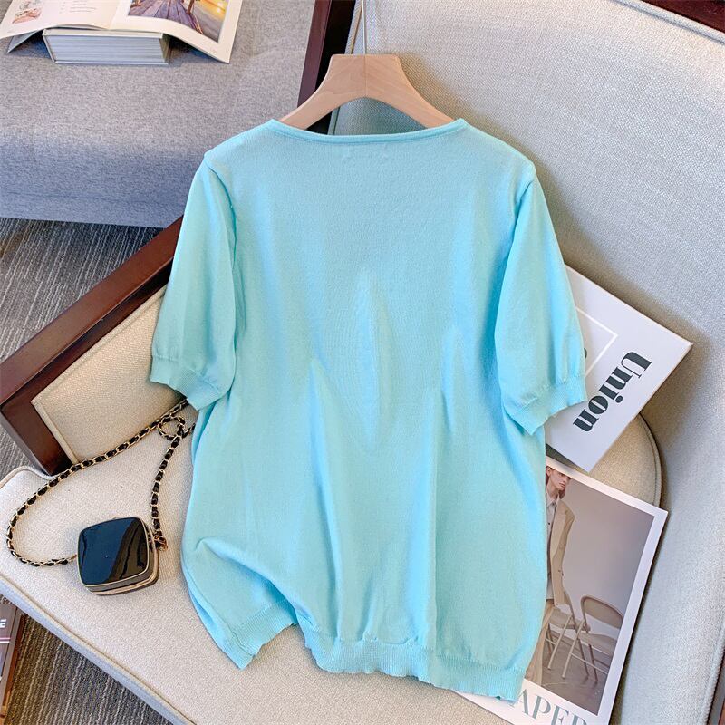 ラージサイズ婦人服2022ファットシスターサマーニュールーズソリッドカラーファッションパーソナリティオールマッチ半袖Tシャツレディーストップ 大きめサイズ 夏物 8884126729052071