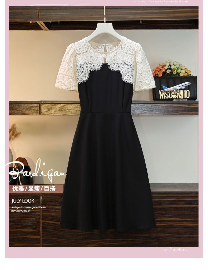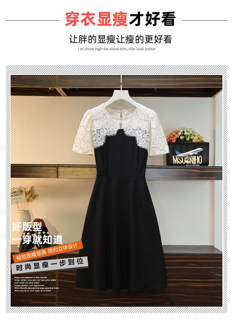 ラージサイズの婦人服2022ファットシスターサマーニューバージョン甘くて年齢を減らすスリムフィットと薄いレースのステッチドレス 大きめサイズ 大人ガーリー スウィート キュート カジュアル 夏物 8884164926110308