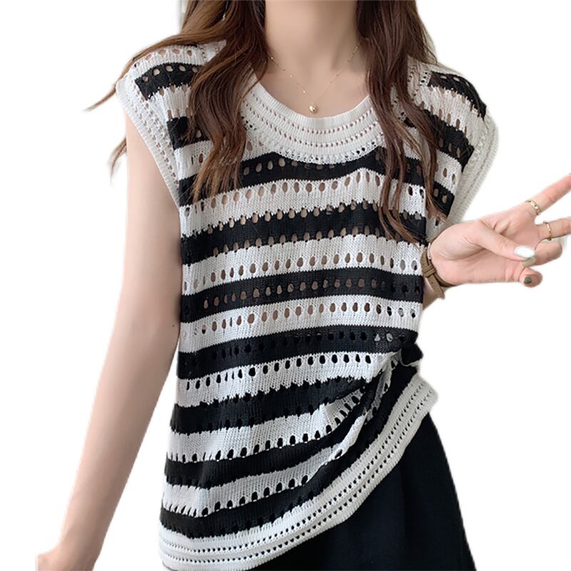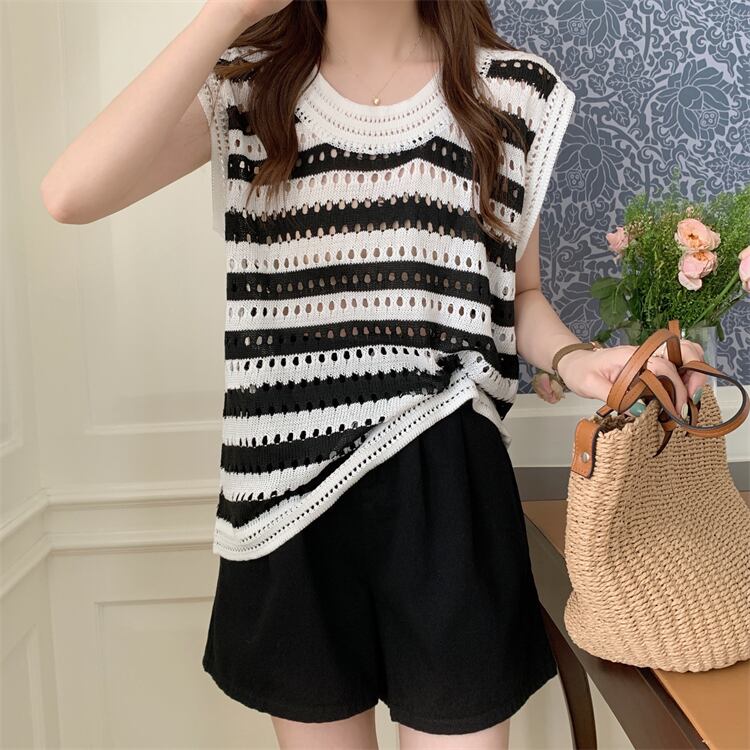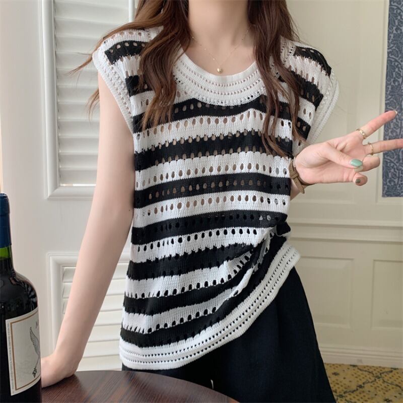 ラージサイズの婦人服2022年流行の女性の夏の新しい太った姉妹中空ニットサスペンダーノースリーブオールマッチ年齢を減らすベストベスト 大きめサイズ サマー 夏物 8884197181245375