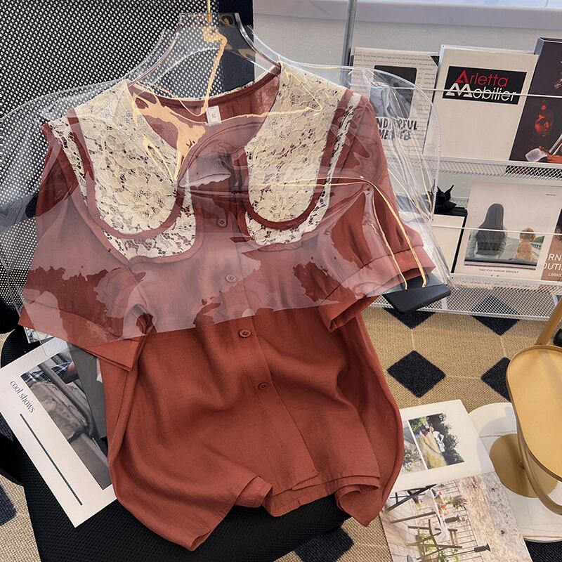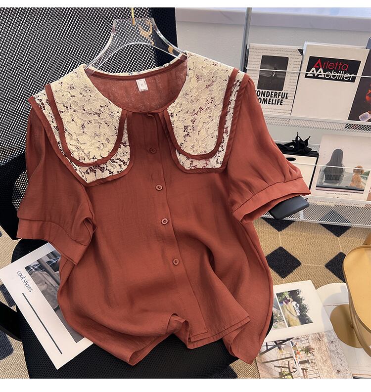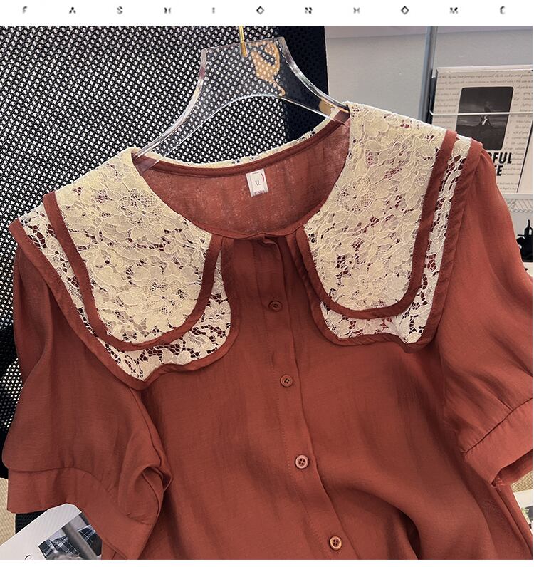 大きいサイズの婦人服2022年の太った姉妹夏の新しい薄くて年齢を減らすシャツTシャツレース気質ルーズトップの女性 大きめサイズ サマー 夏物 8884189048907041