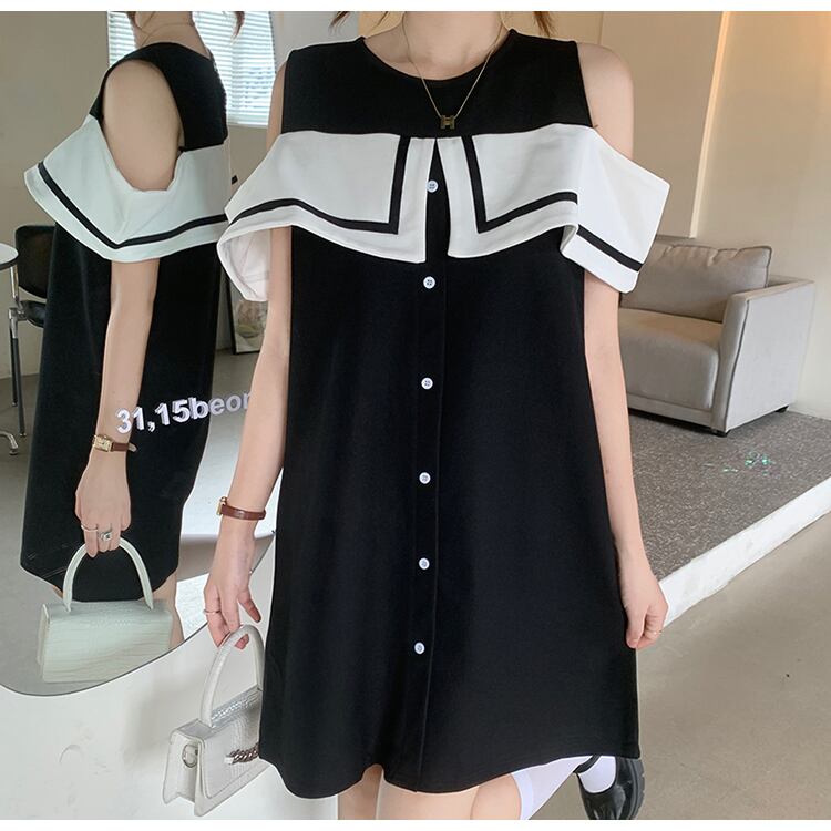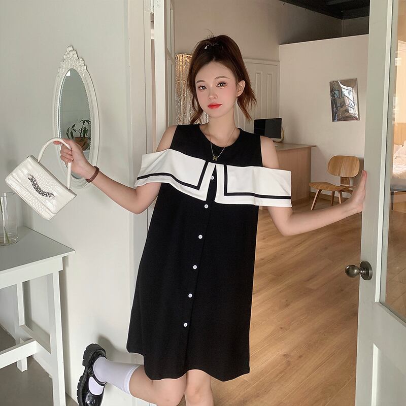 ラージサイズの婦人服2022ファットシスターサマーニューファッションオールマッチスリムフリルオフショルダードレス 大きめサイズ 夏物 8884144718113317