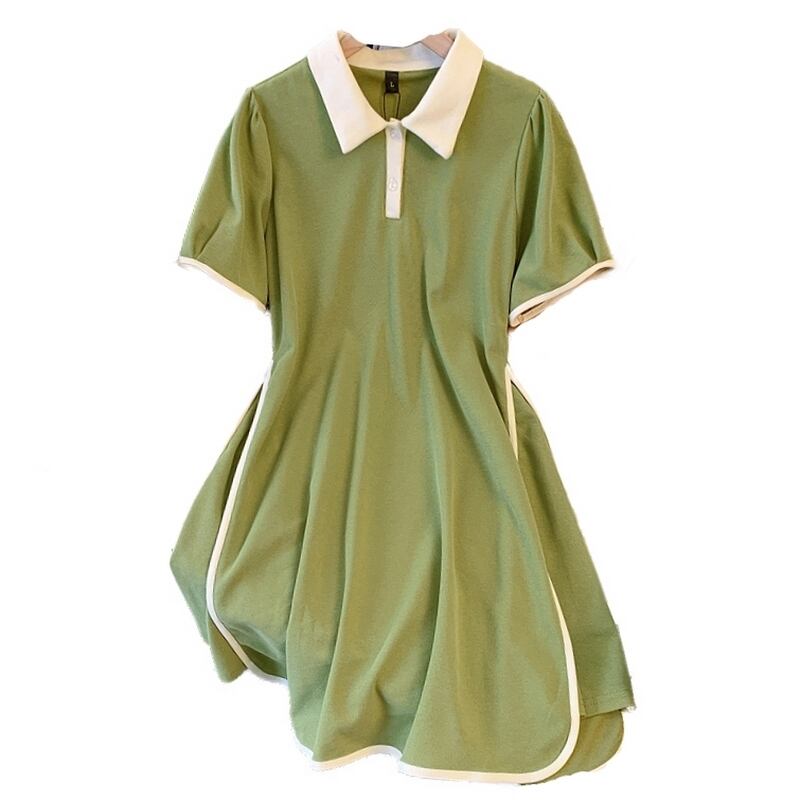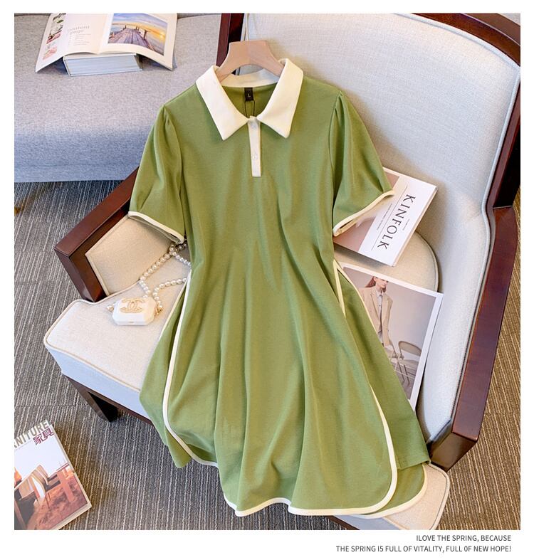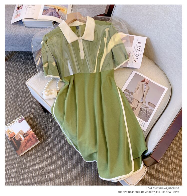 ラージサイズの婦人服2022年夏の新作ファットシスターカジュアルデザインセンスポロカラーとウエストフレンチドレス 大きめサイズ サマー 夏物 8884122678896232