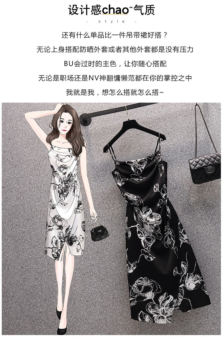 大きいサイズの婦人服2022年の太った姉妹夏の新しいファッションショー薄くて純粋な欲望風ロングスカート花柄サスペンダードレス 大きめサイズ サマー 夏物 ピュア 8884191976335679