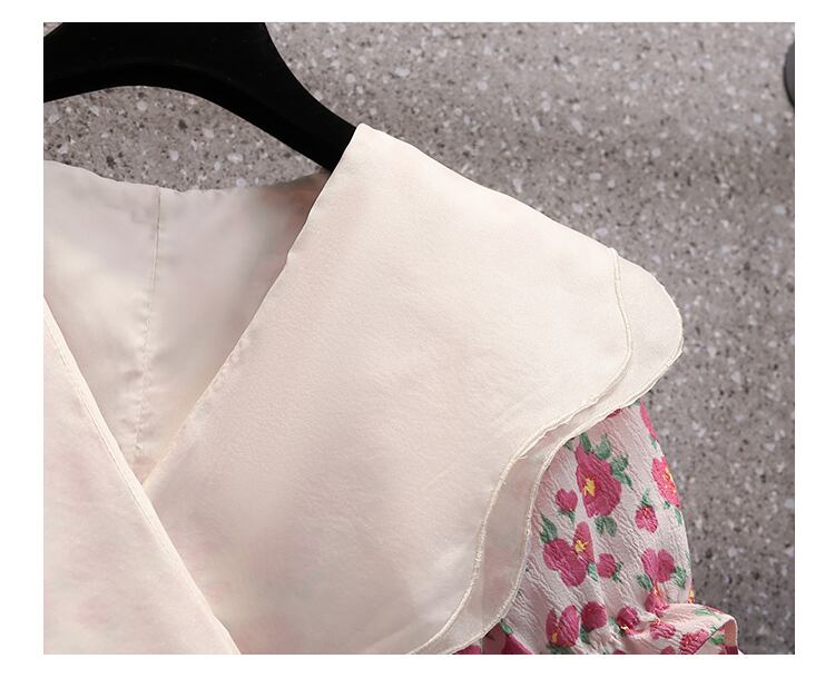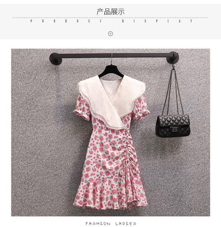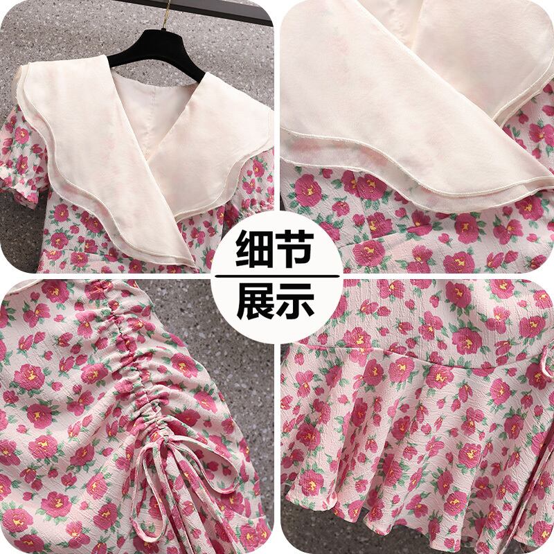 プラスサイズの婦人服2022年太った姉妹夏ニューエイジ-甘い穏やかな風を減らすスリムなスリムな花柄のドレス 大きめサイズ 大人ガーリー スウィート キュート カジュアル サマー 夏物 8884185465676734