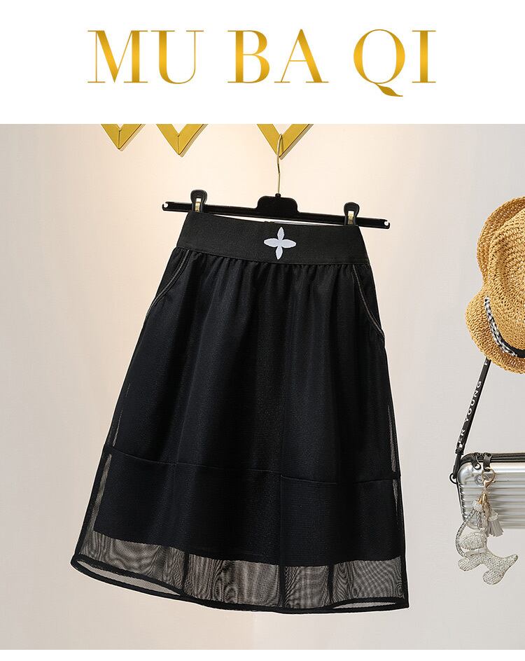 ラージサイズ婦人服2022ファットシスターサマーニューガーゼスカートショートスカート薄手ハイウエスト細いaラインフラワーバッドスカート ハイウェスト 大きめサイズ 夏物 フラワーデザイン 8884167239064894