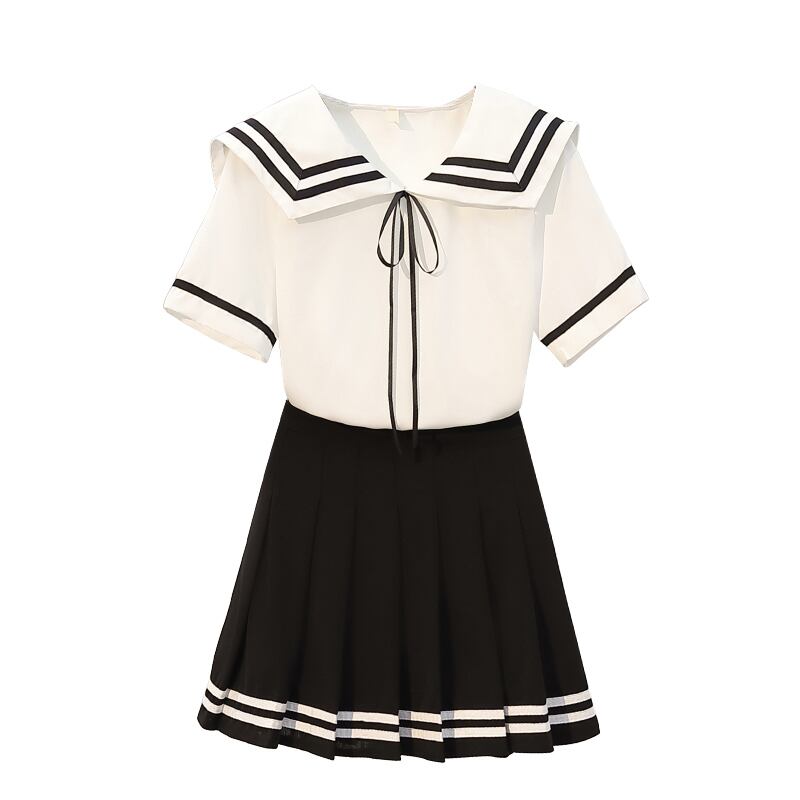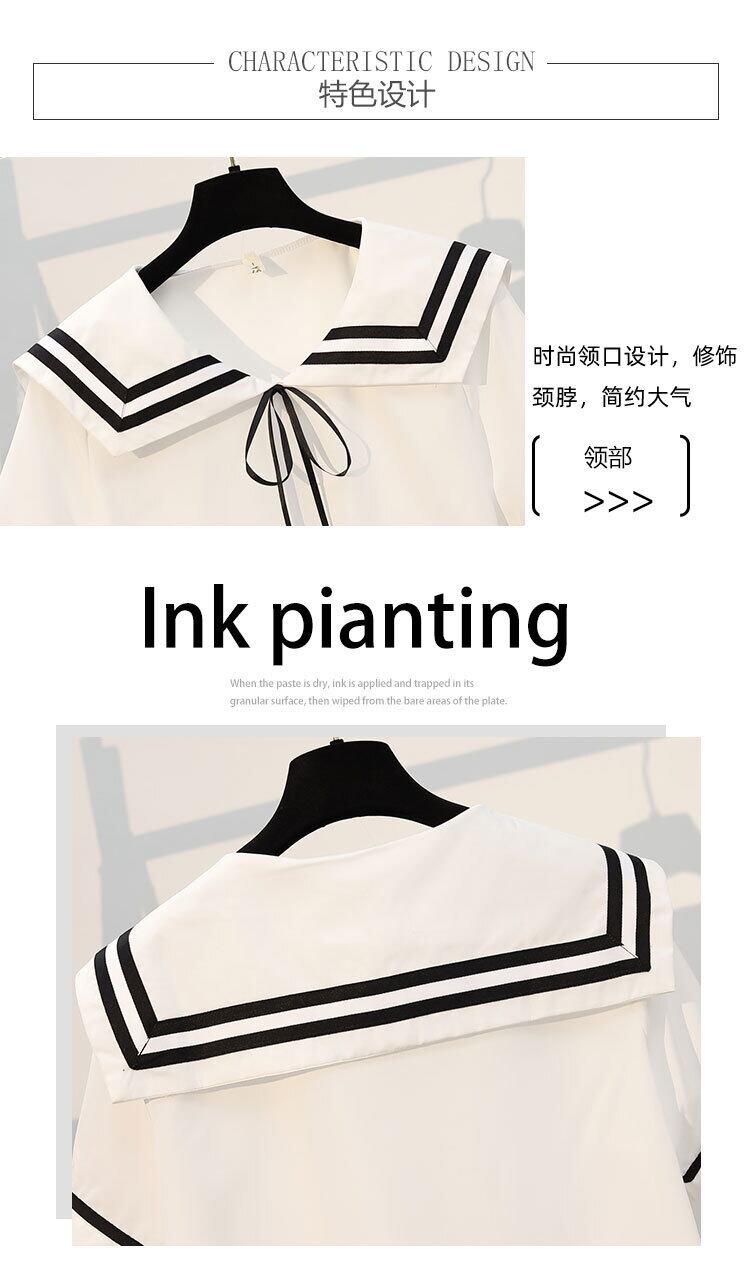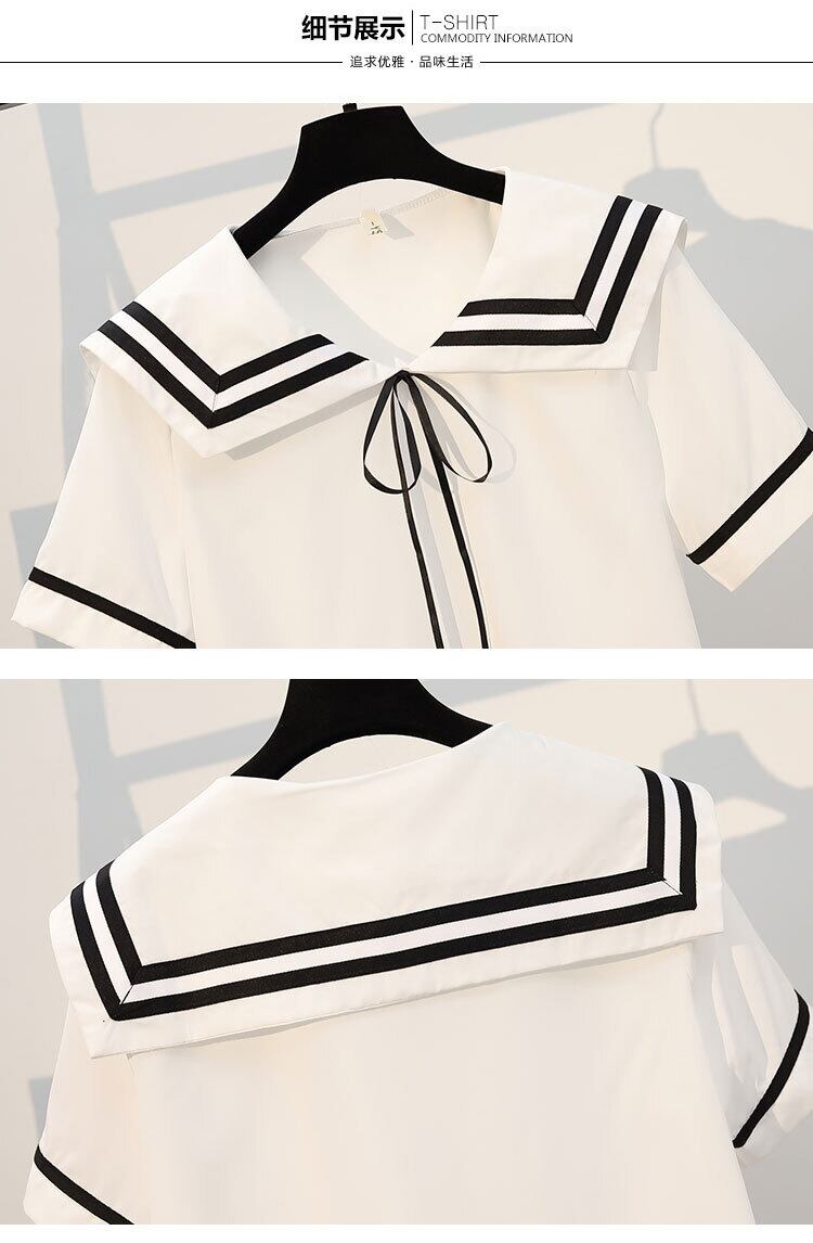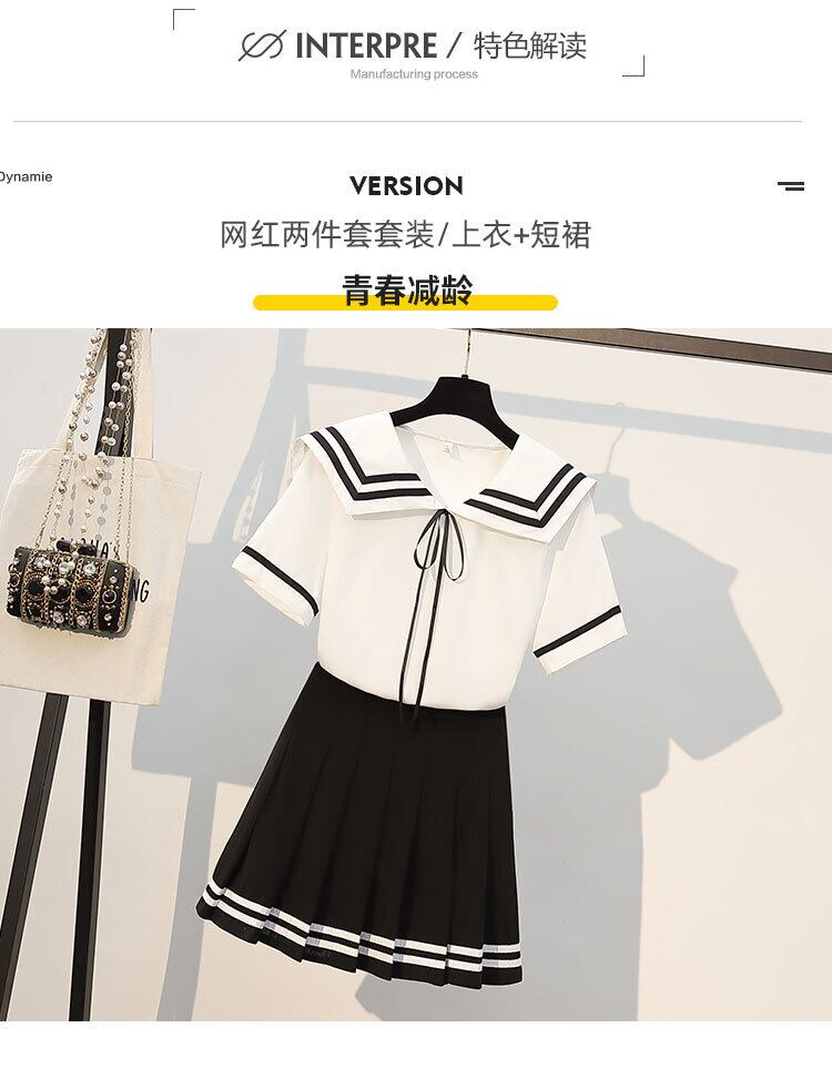 プラスサイズの婦人服2022ファットシスターサマーニューファッション年齢を減らすプリーツスカートネイビーカラートップツーピースセット 大きめサイズ 夏物 8884190323329743