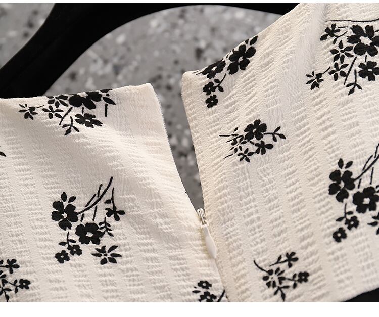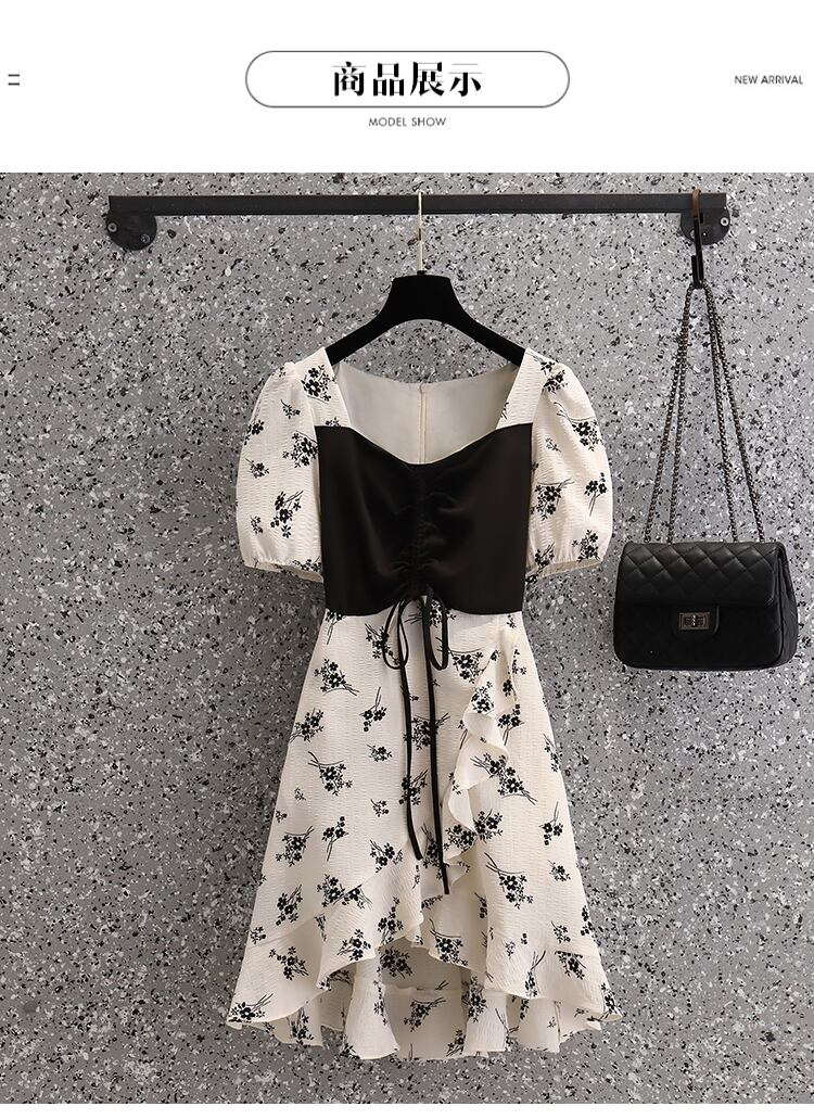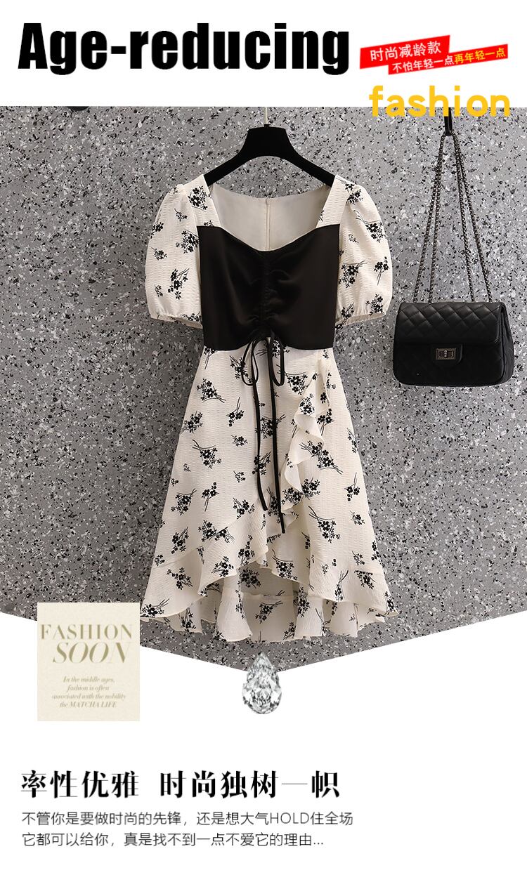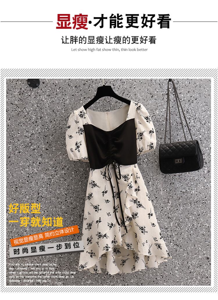 大きいサイズの婦人服2022年夏の新しい太った姉妹フランスの花のステッチ偽のツーピース巾着ファッションドレス 大きめサイズ サマー 夏物 花柄 8884171932822351