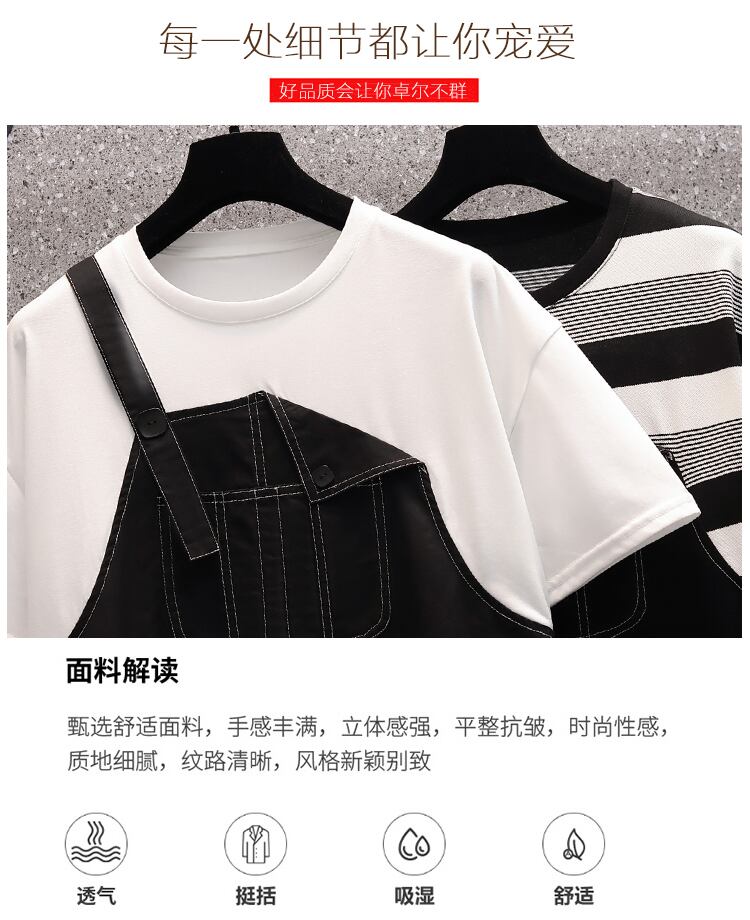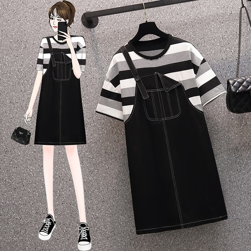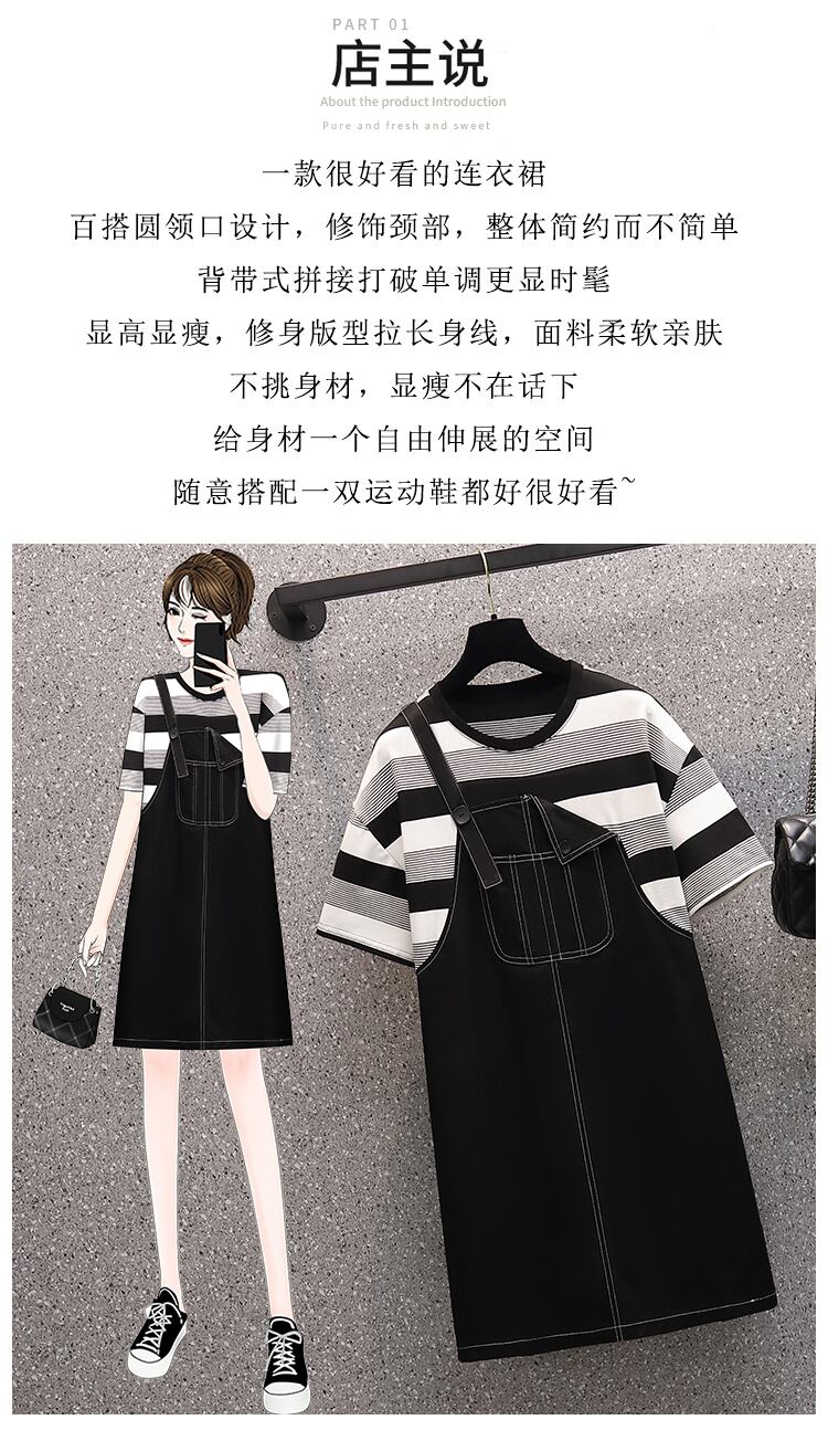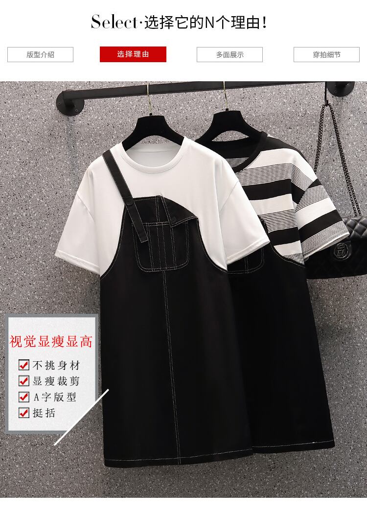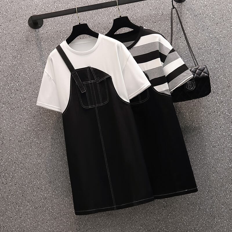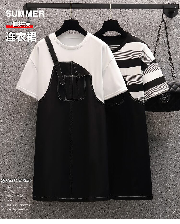 ラージサイズの婦人服2022年流行の女性の夏の新しい太った姉妹ファッション薄い偽のツーピースオールマッチ年齢を減らすストラップドレス 大きめサイズ サマー 夏物 8884129376813621