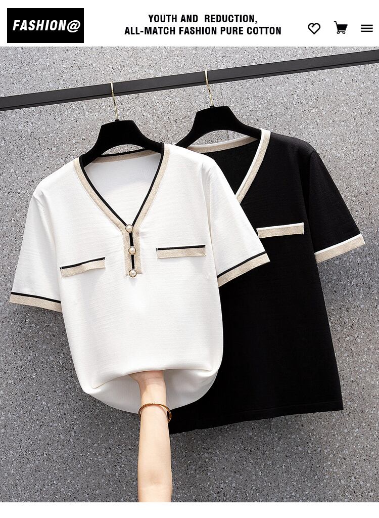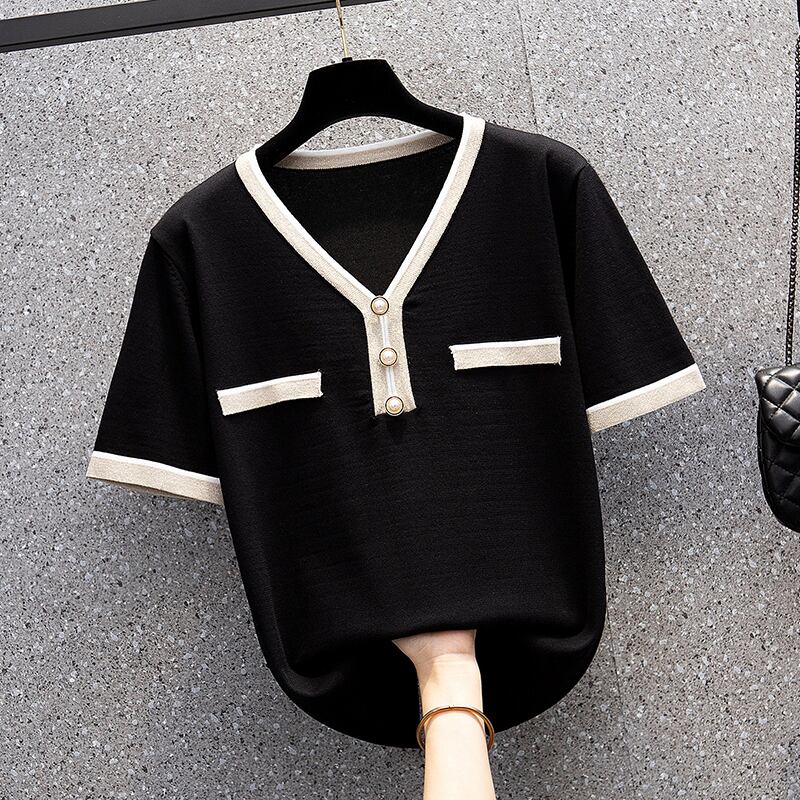 大きいサイズの婦人服2022年の太った姉妹夏の新しいeignスタイルのニット半袖Tシャツルーズで薄いアイスシルクトップの女性 大きめサイズ サマー 夏物 8884173204596908
