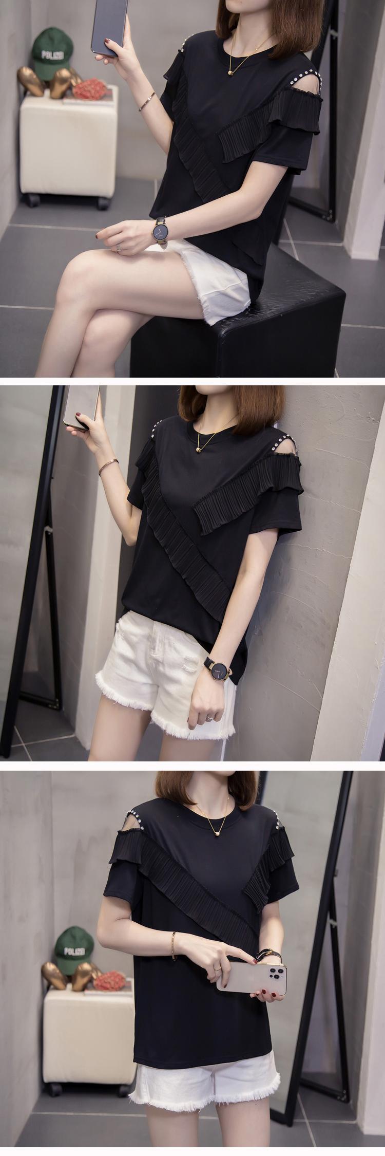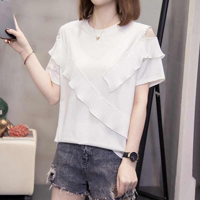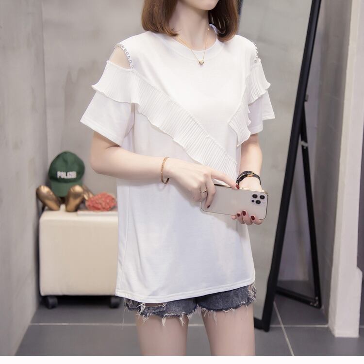 ラージサイズの婦人服2022年ファットシスターサマーニューバージョンのウエスタンスタイルファッションスリムフリル半袖Tシャツトップ 大きめサイズ 夏物 8884192723072927
