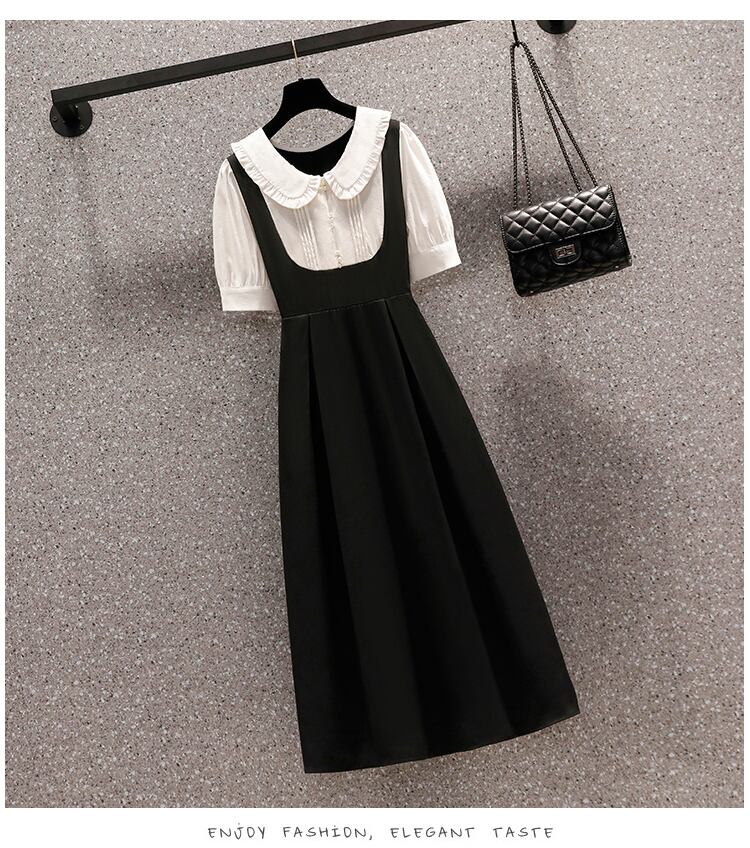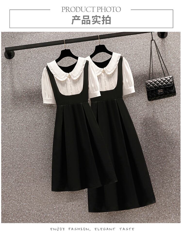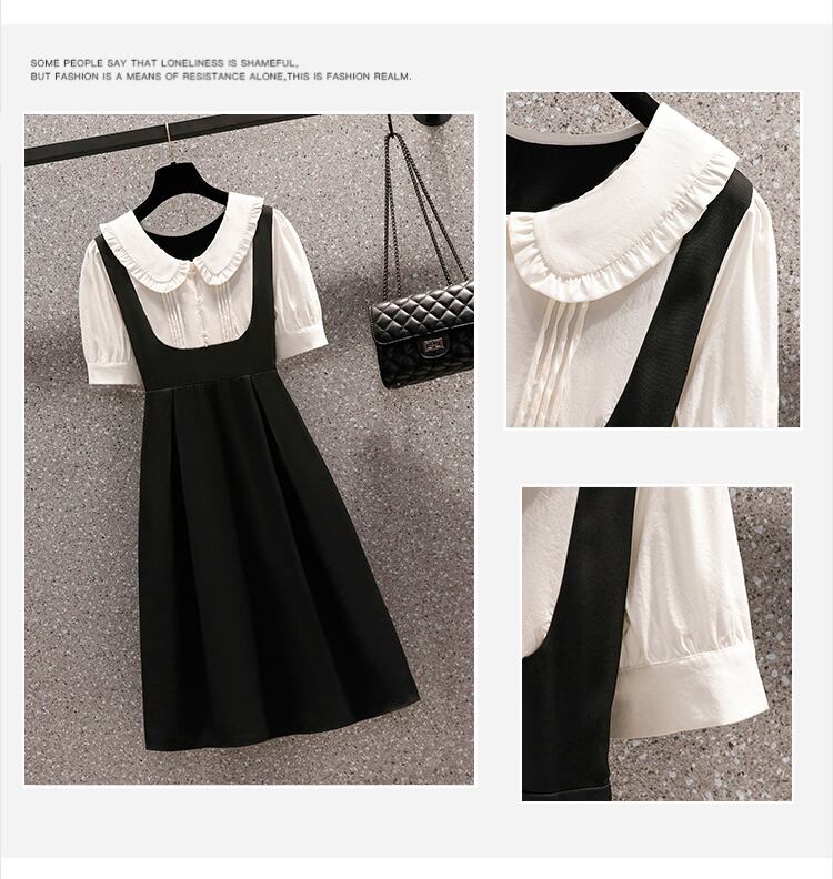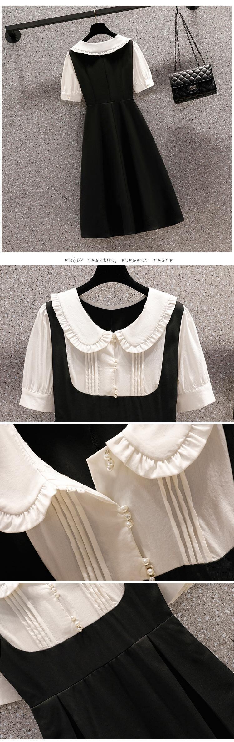 ラージサイズの婦人服2022年夏の新しい太った姉妹の偽のツーピースの年齢を減らす人形の襟のステッチの気質のウエストドレス 大きめサイズ サマー 夏物 8884183725921812