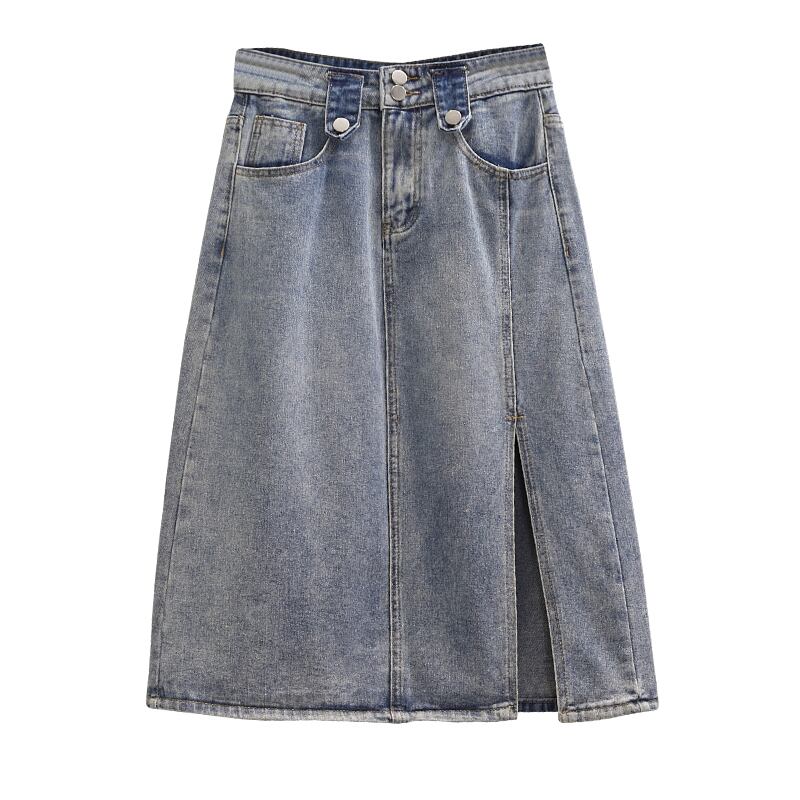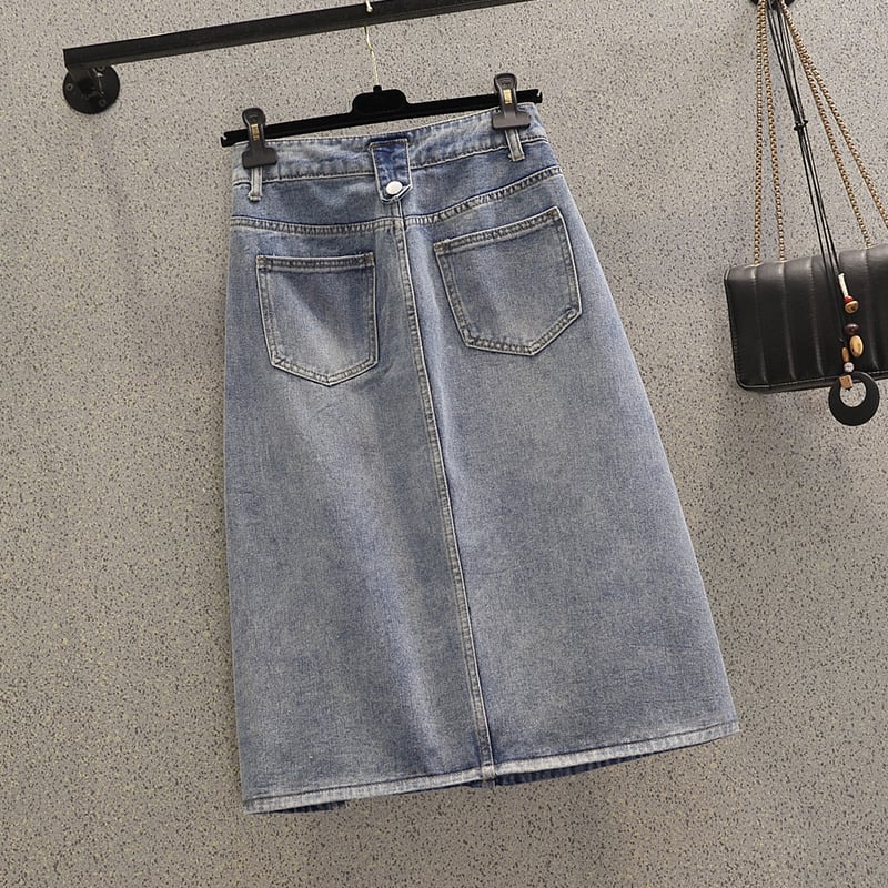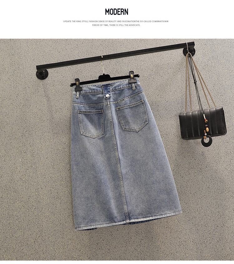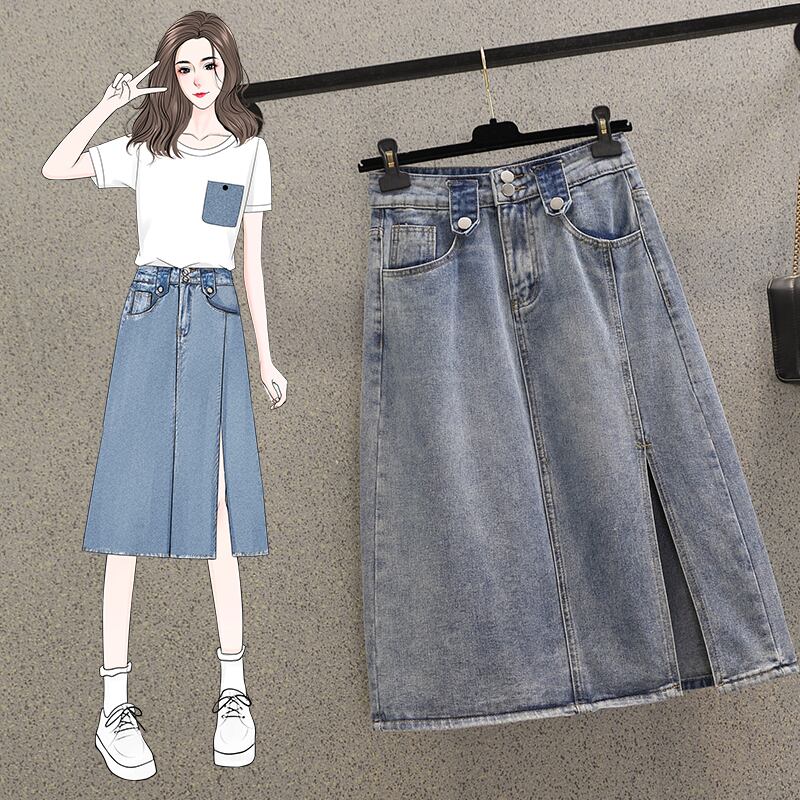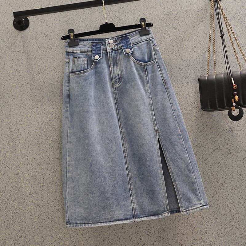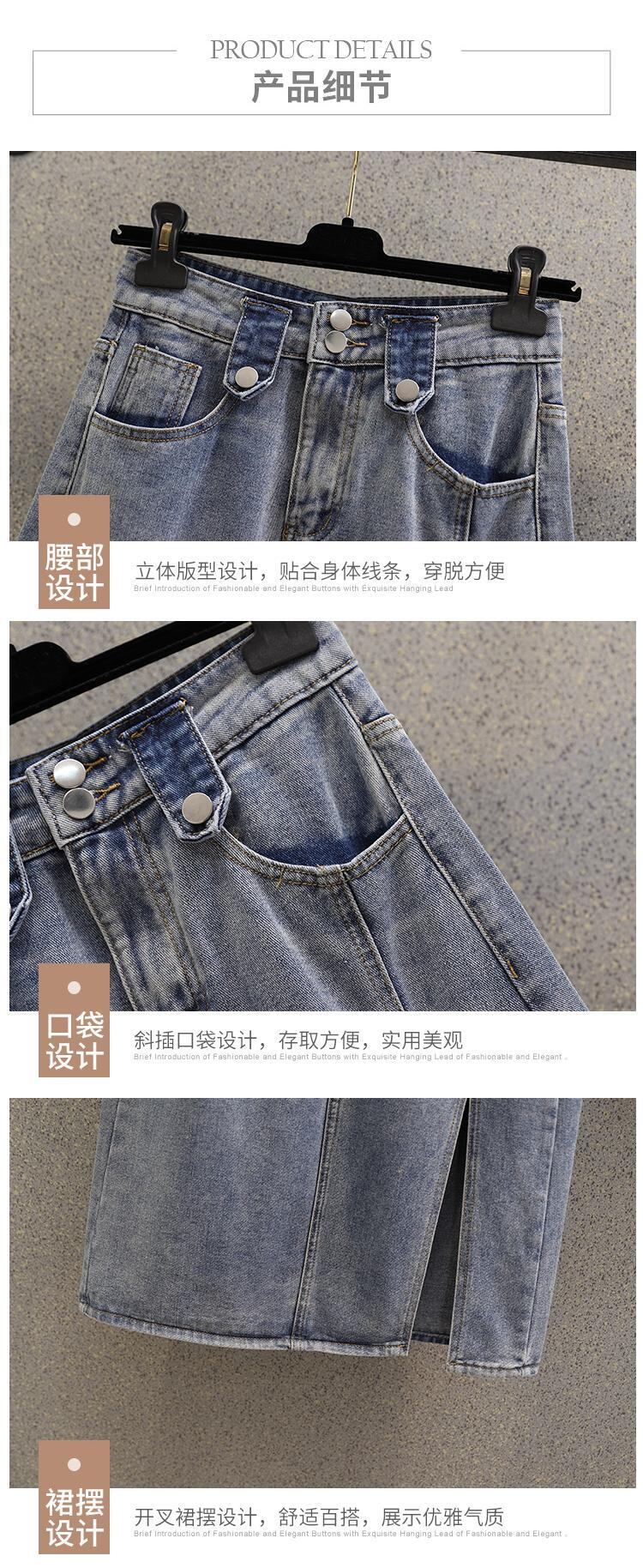ラージサイズ婦人服2022ファットシスターサマーニューファッションハイウエストシンオールマッチ裾二股デニムスカート ハイウェスト 大きめサイズ 夏物 8884119394266064