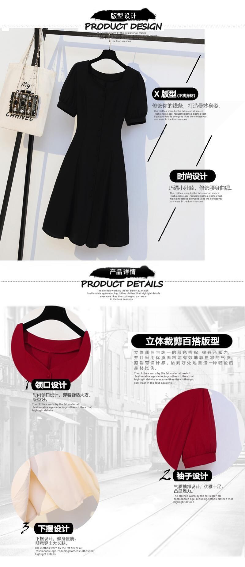 ラージサイズの婦人服2022年夏の新しいファットシスター気質デザインセンス年齢を下げる無地の腹を覆うスクエアカラーのドレスの女性 大きめサイズ サマー 夏物 ソリッドカラー スクウェア 8884128522006891