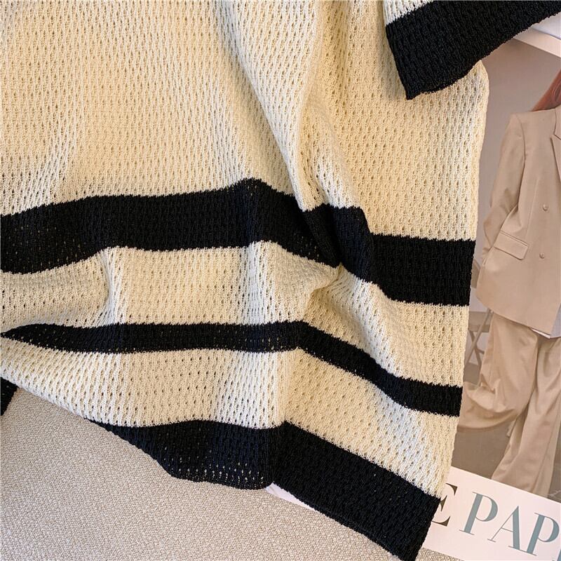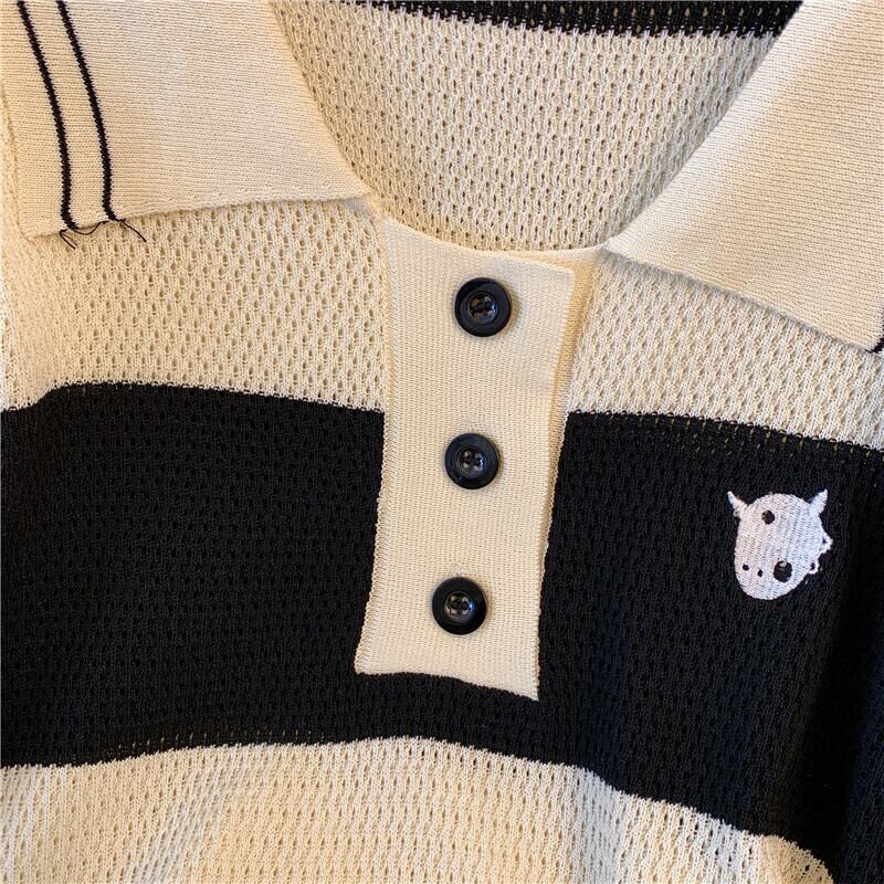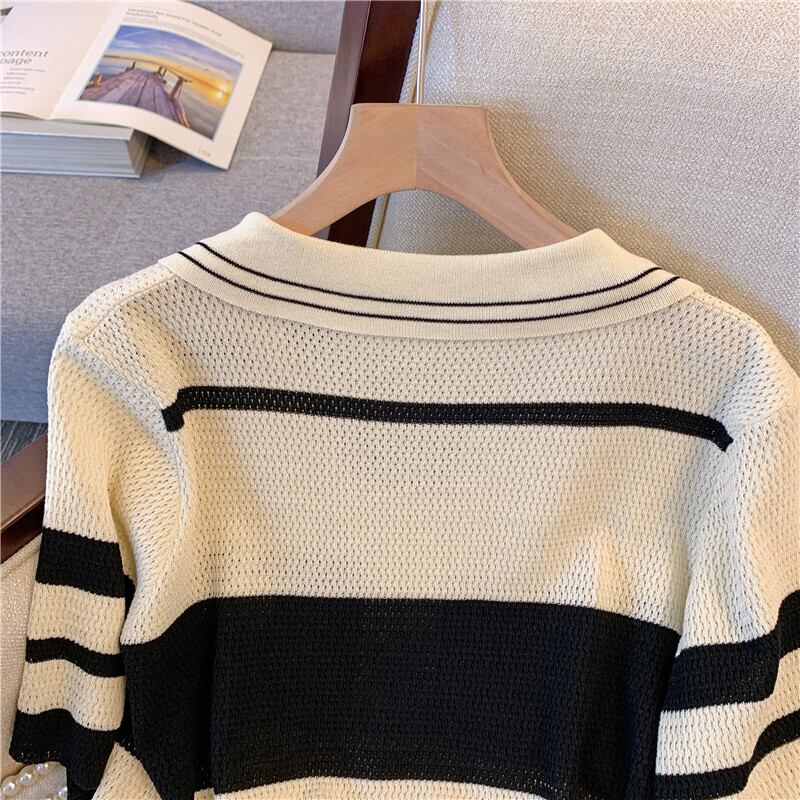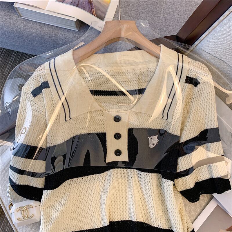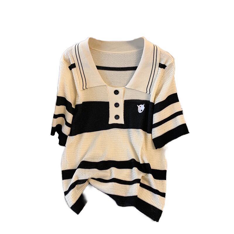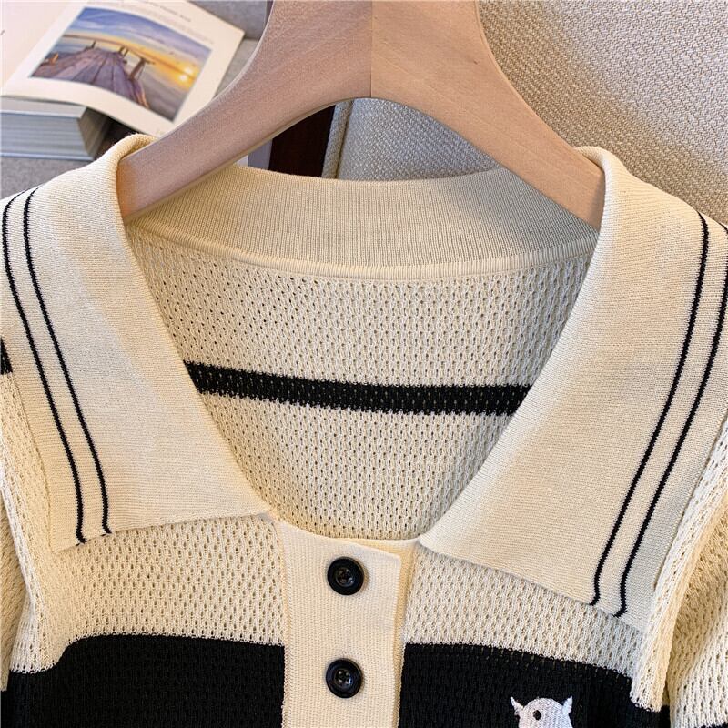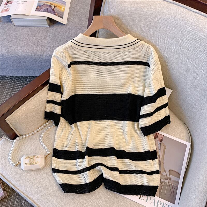 ラージサイズの婦人服2022年流行のレディースサマーニューファットシスタールーズで薄いデザインのポロカラーレトロニットTシャツ 大きめサイズ 夏物 8884119730232510