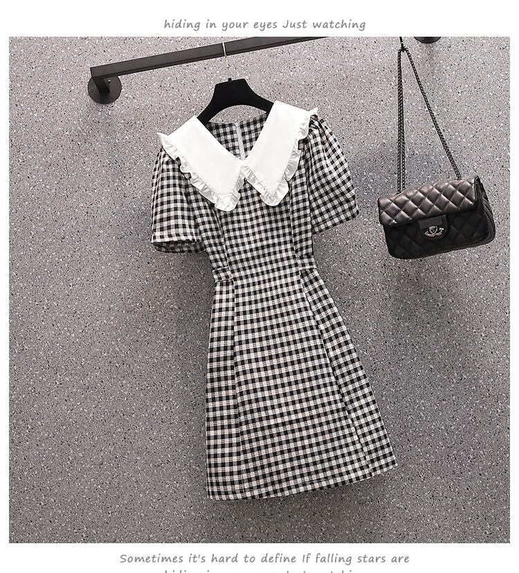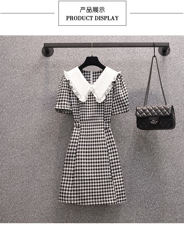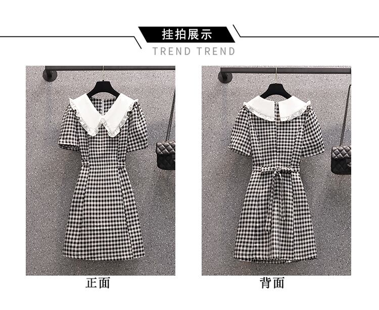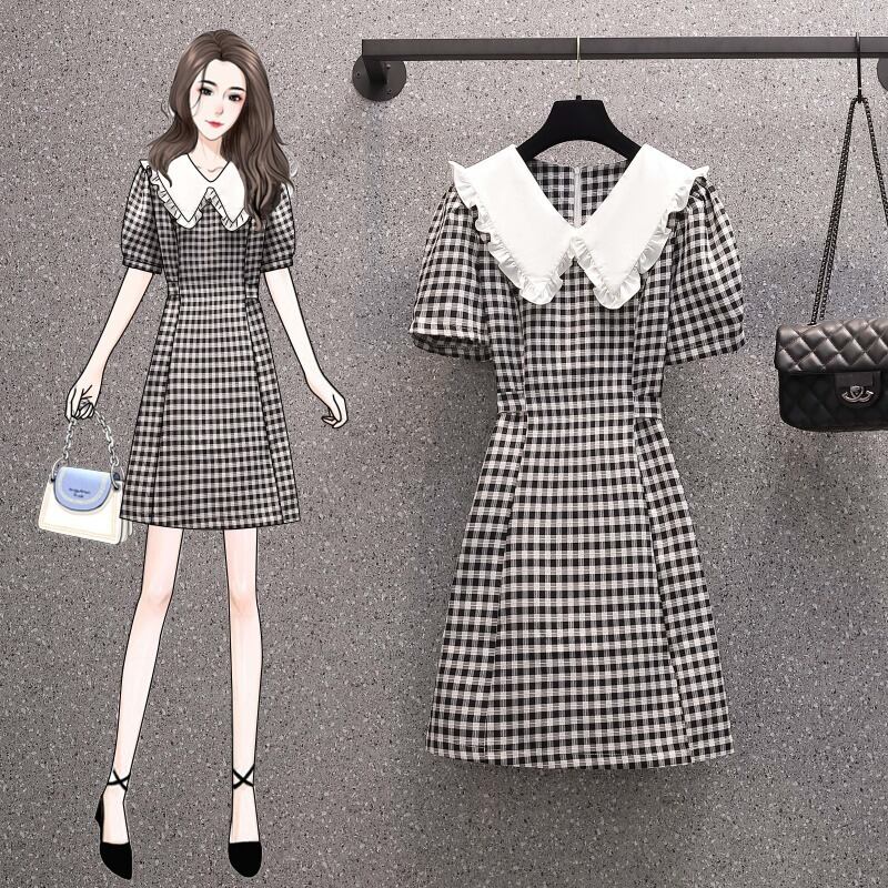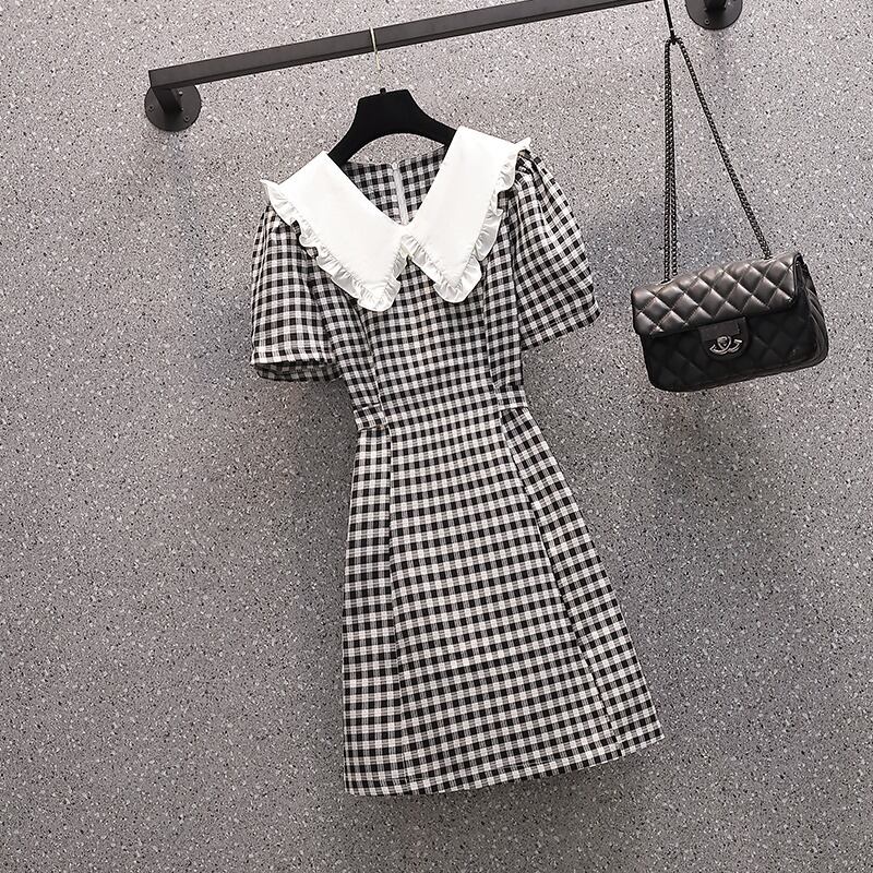 ラージサイズの婦人服2022年流行の女性の夏の新しい太った姉妹バージョンのファッションスリムな人形の襟の格子縞の年齢を減らすドレス 大きめサイズ サマー 夏物 8884147314210422