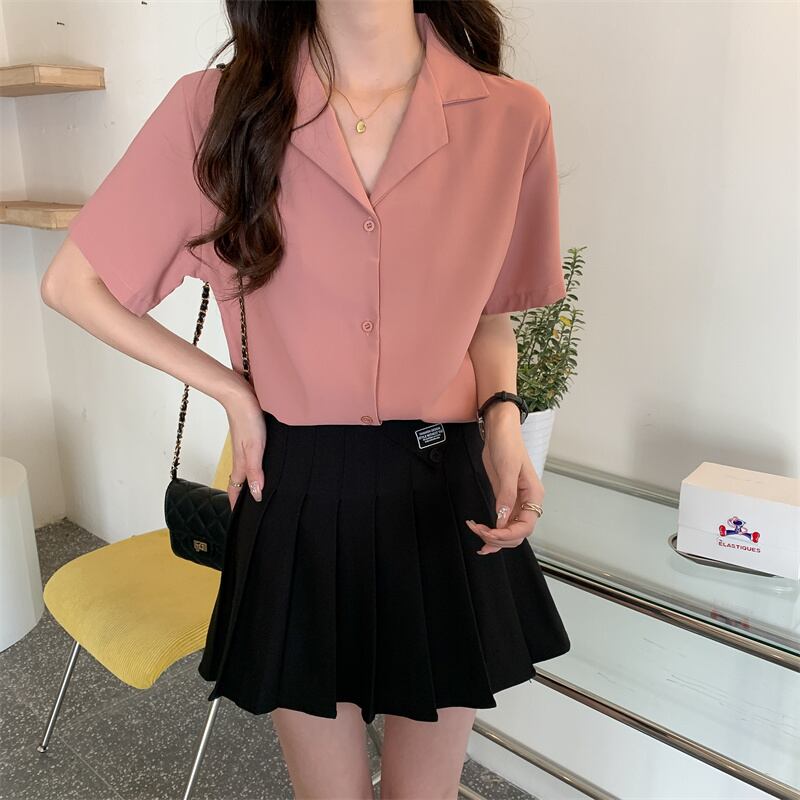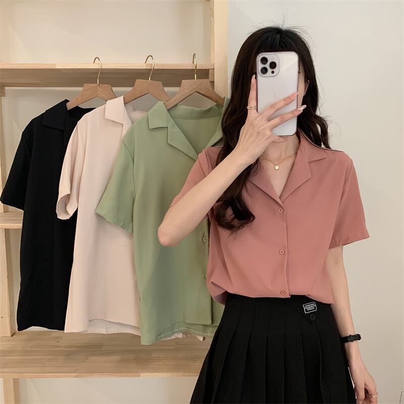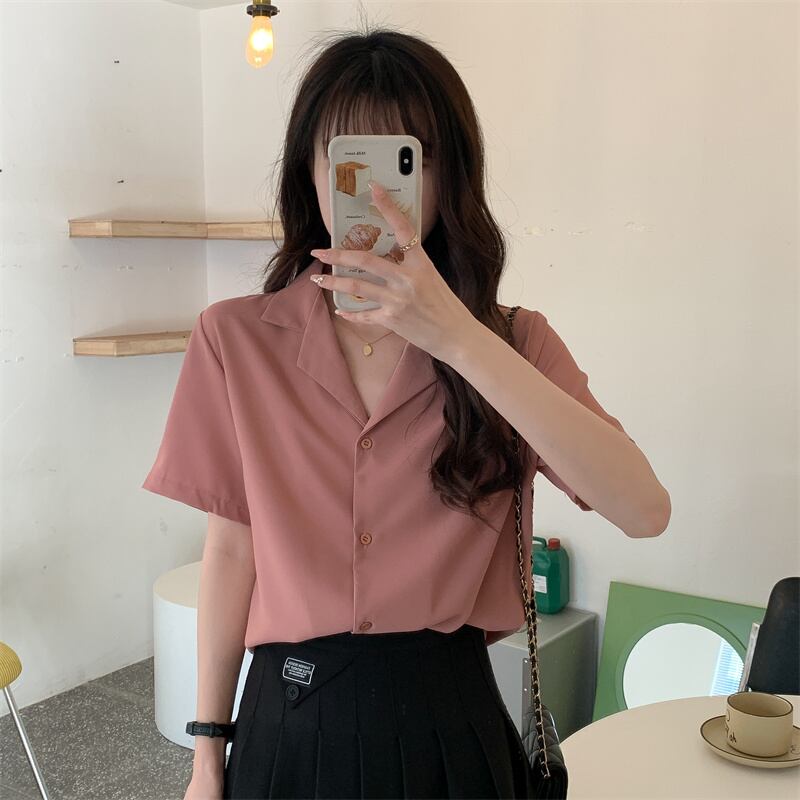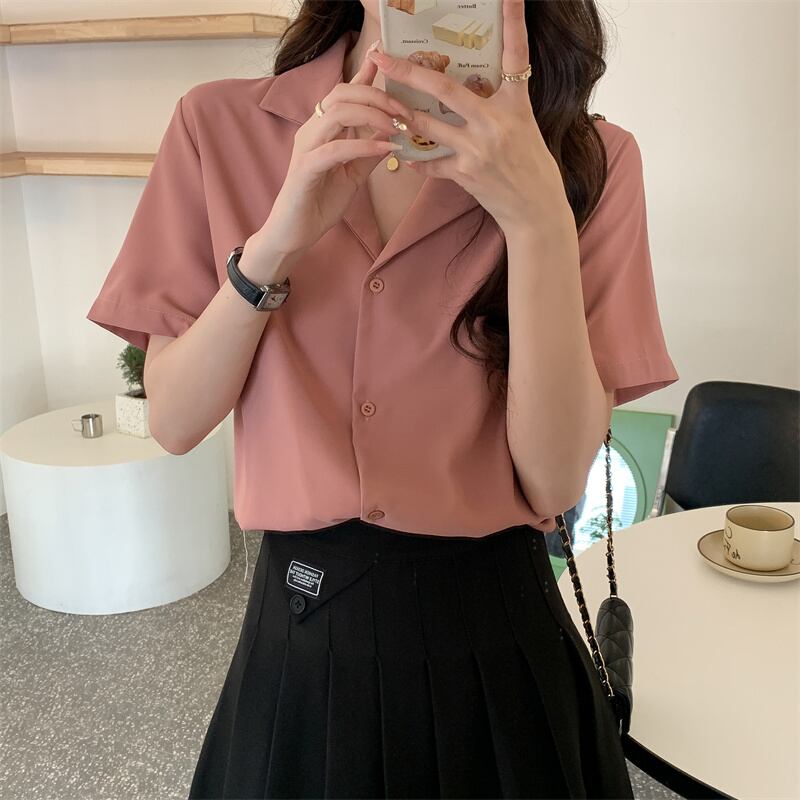 ラージサイズ婦人服2022ファットシスターサマーニューバージョンシンプル半袖シャツルーズスーツカラーオールマッチトップ 大きめサイズ 夏物 8884181248410930