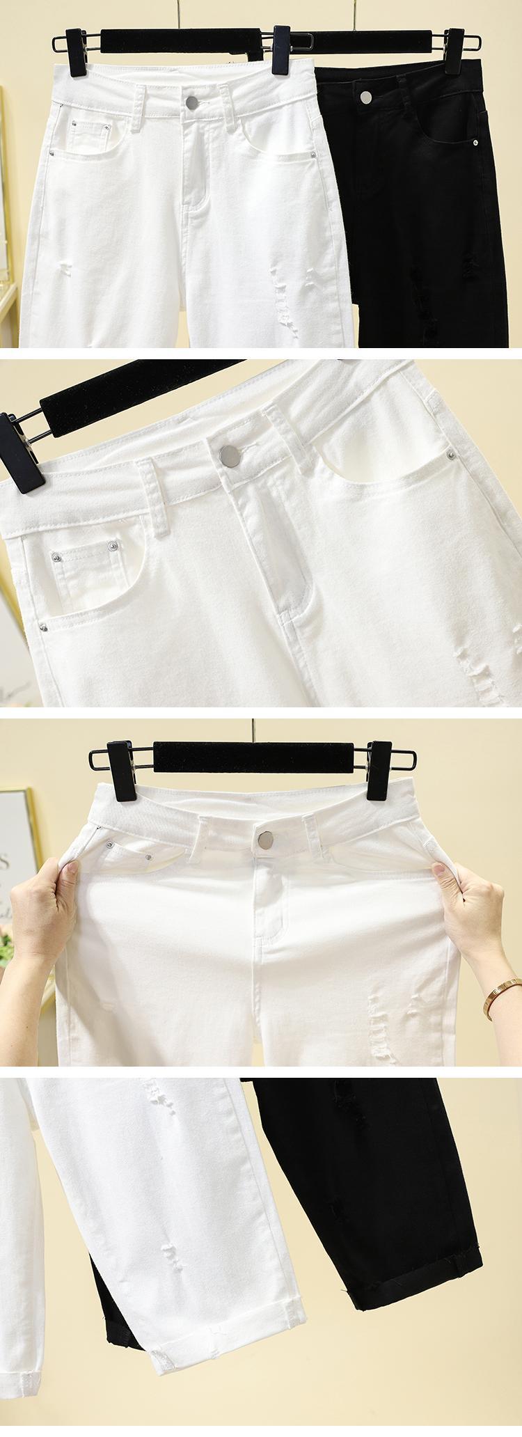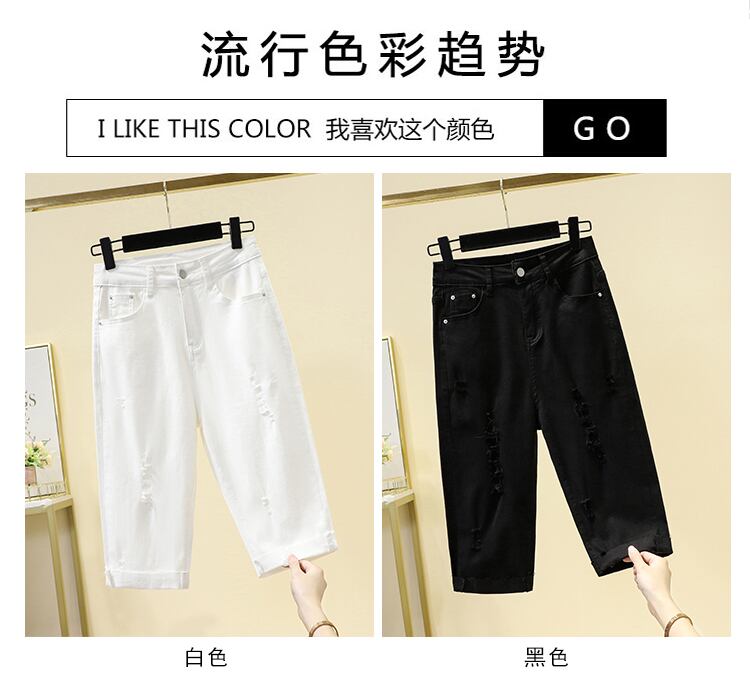 ラージサイズのファッションエインスタイルの破れたデニムショーツ女性の2022年夏の薄いセクションハイウエストルーズストレート伸縮性のある5ポイントパンツ ハイウェスト エラスティック 大きめサイズ サマー 夏物 ブルマー 8884137048602022