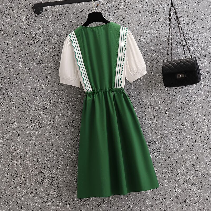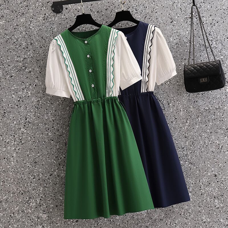 プラスサイズの婦人服2022ファットシスター夏の新しいレトロなフランスのaラインスカートルーズバージョンステッチファッションドレス 大きめサイズ サマー 夏物 8884155105885583
