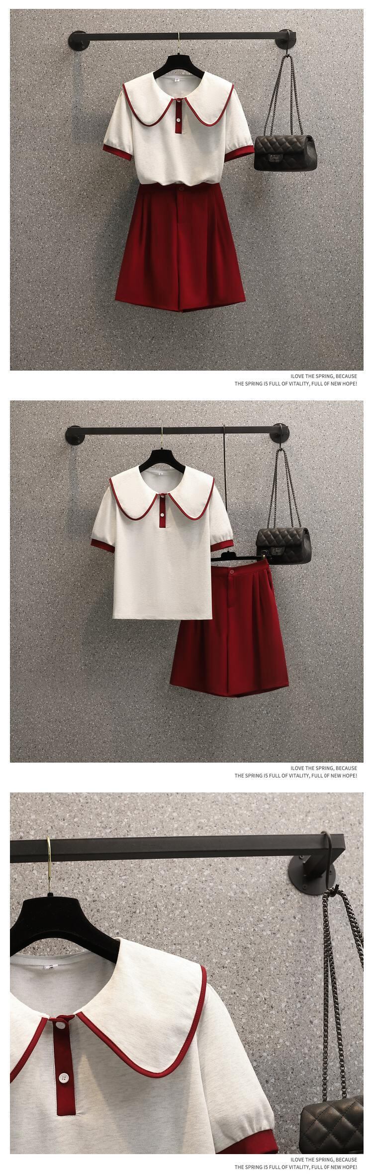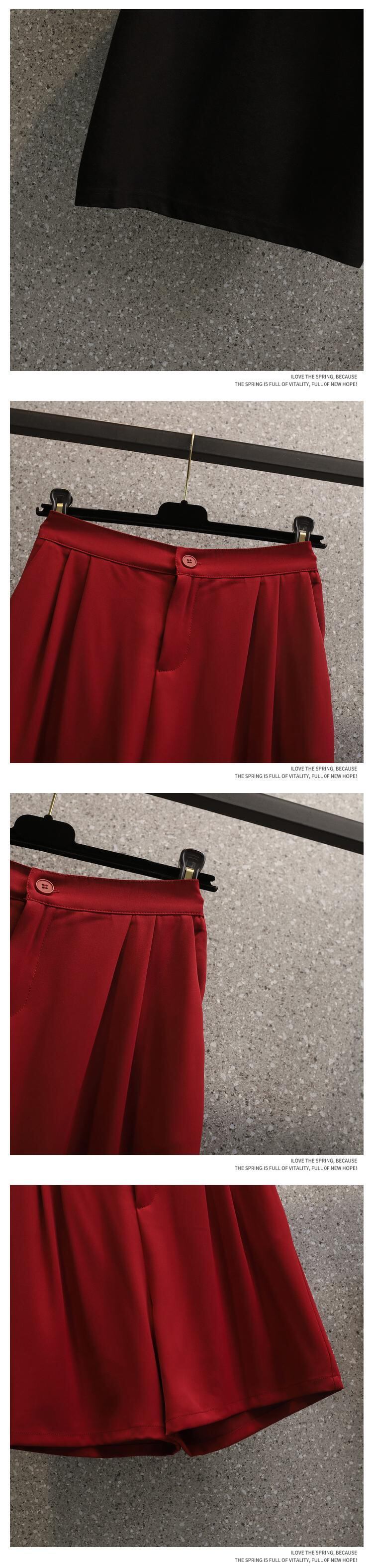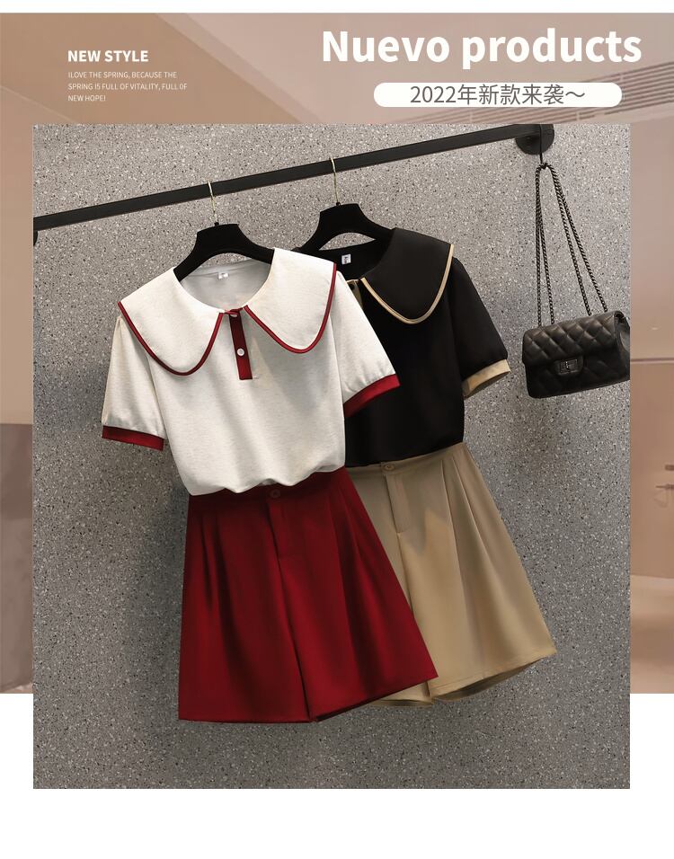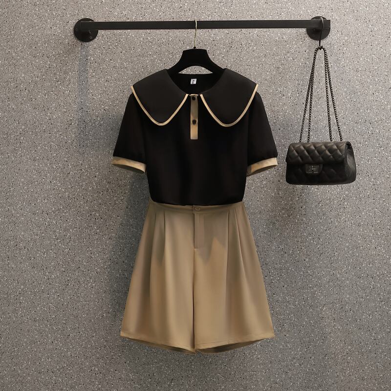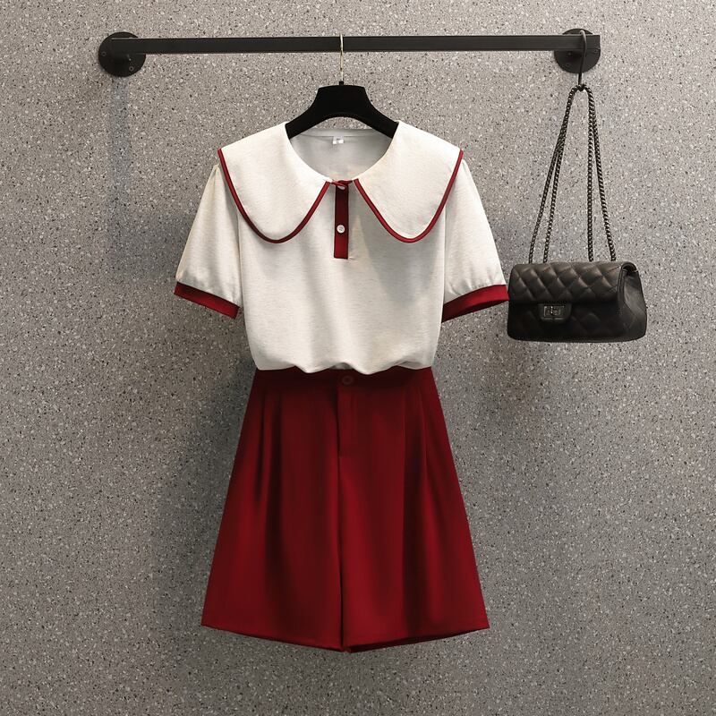 ラージサイズ婦人服2022年夏新太姉妹フレンチドールカラートップハイウエスト気性カジュアルパンツツーピースセット ハイウェスト 大きめサイズ サマー 夏物 8884127513109373