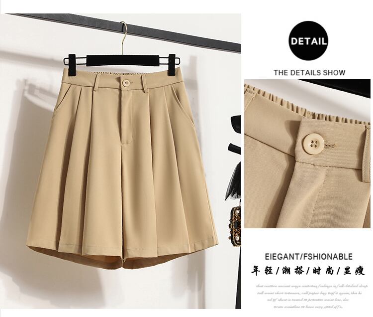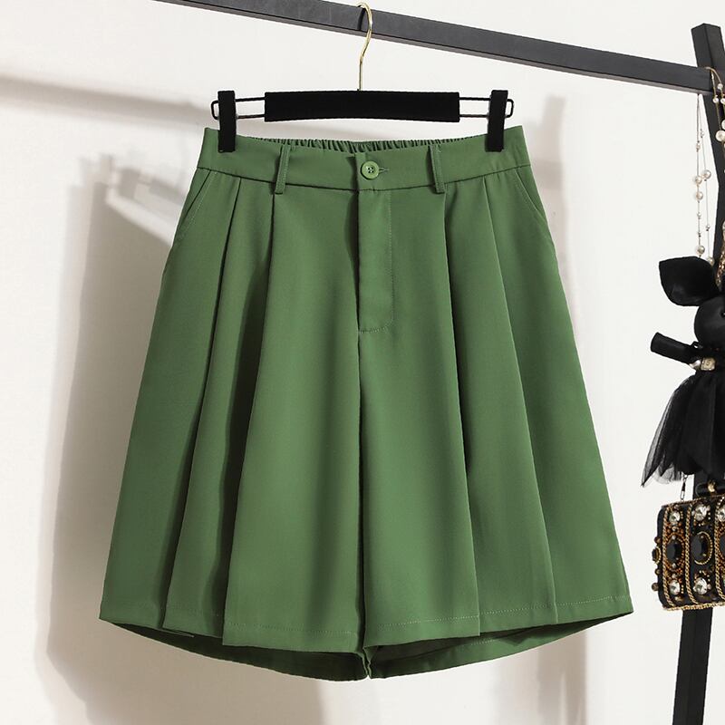大きいサイズの婦人服2022年太った姉妹夏の新しいズボン薄いセクション分割ハイウエスト薄い5ポイントワイドレッグショーツ女性 ハイウェスト 大きめサイズ サマー 夏物 ブルマー ワイドパンツ 888415597437818