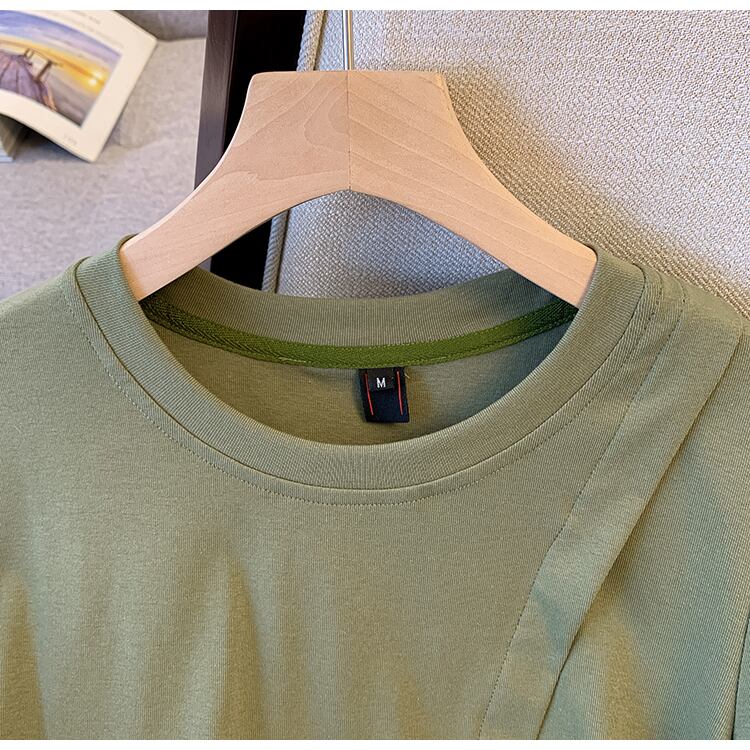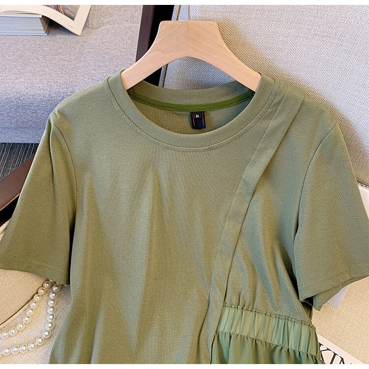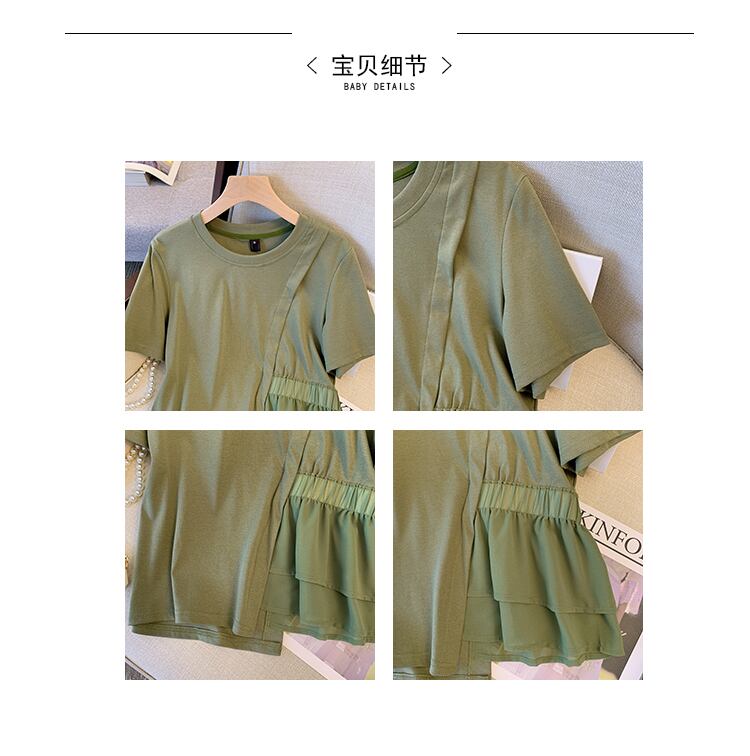 ラージサイズの婦人服2022年夏の流行の女性の新しい太った姉妹ファッションシフォンステッチ非対称半袖トップTシャツの女性 大きめサイズ サマー 夏物 8884142279636646