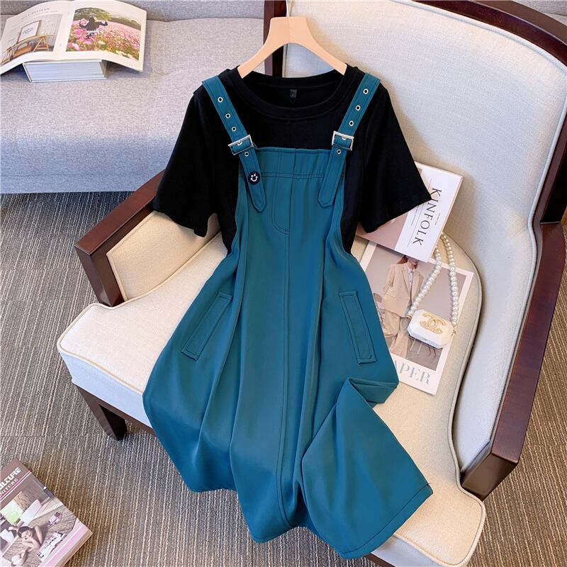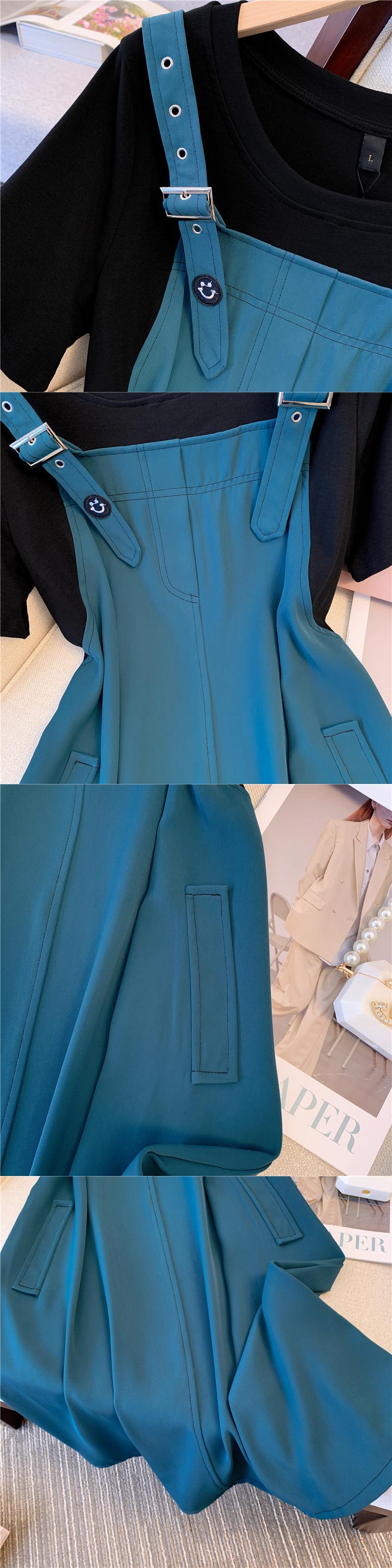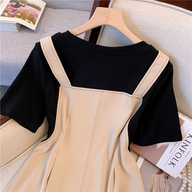 ラージサイズの婦人服2022年夏の新しいファットシスターファッションステッチニッチカバーベリーフェイクツーピースフレンチドレスの女性 大きめサイズ サマー 夏物 8884112148487068