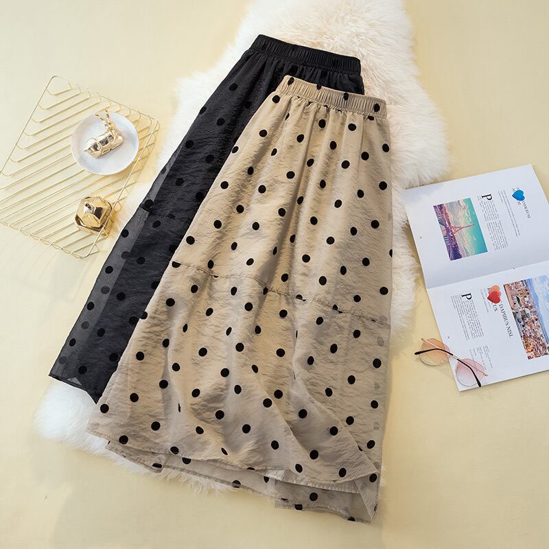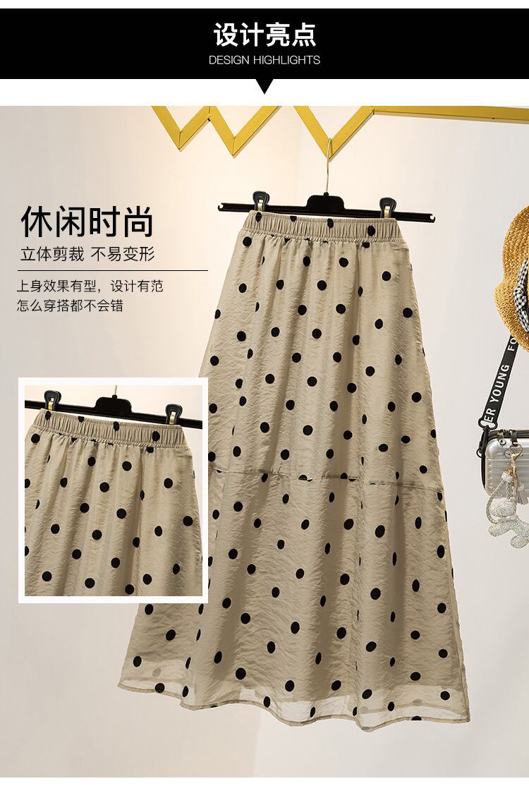ラージサイズの婦人服2022ファットシスターサマーニューフレンチヘップバーンスタイルミドル丈気質薄い水玉スカート 大きめサイズ 夏物 8884150895627483