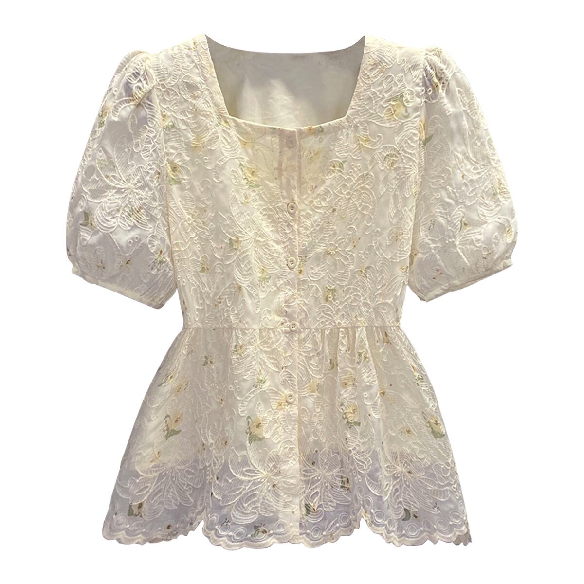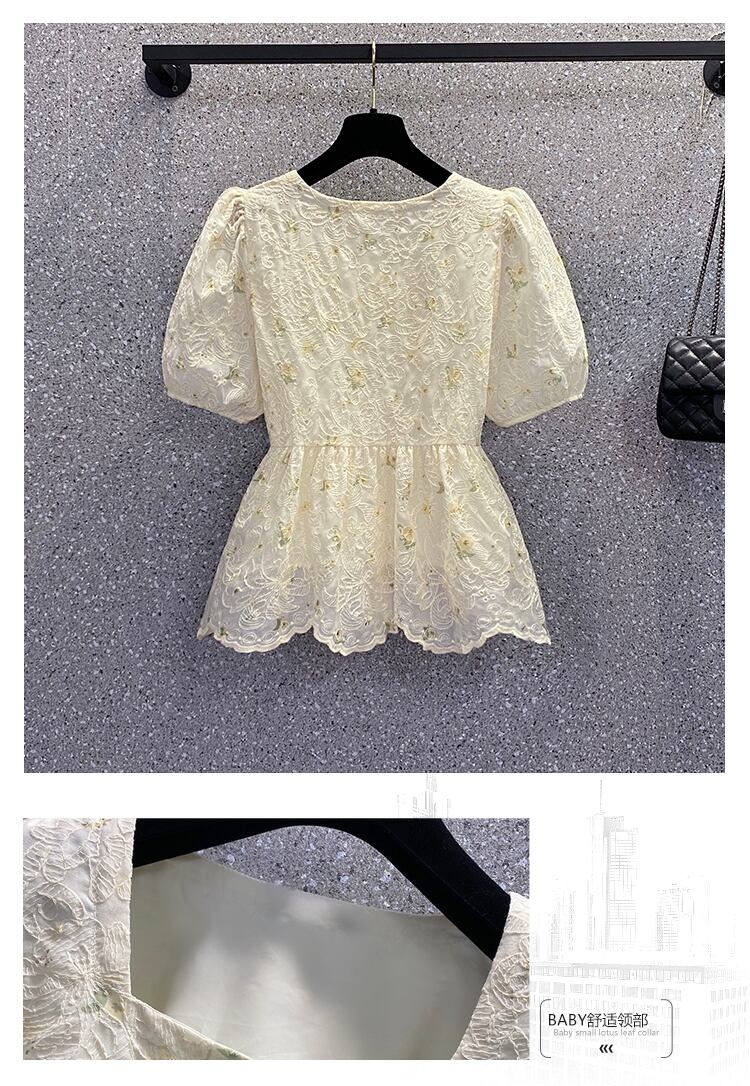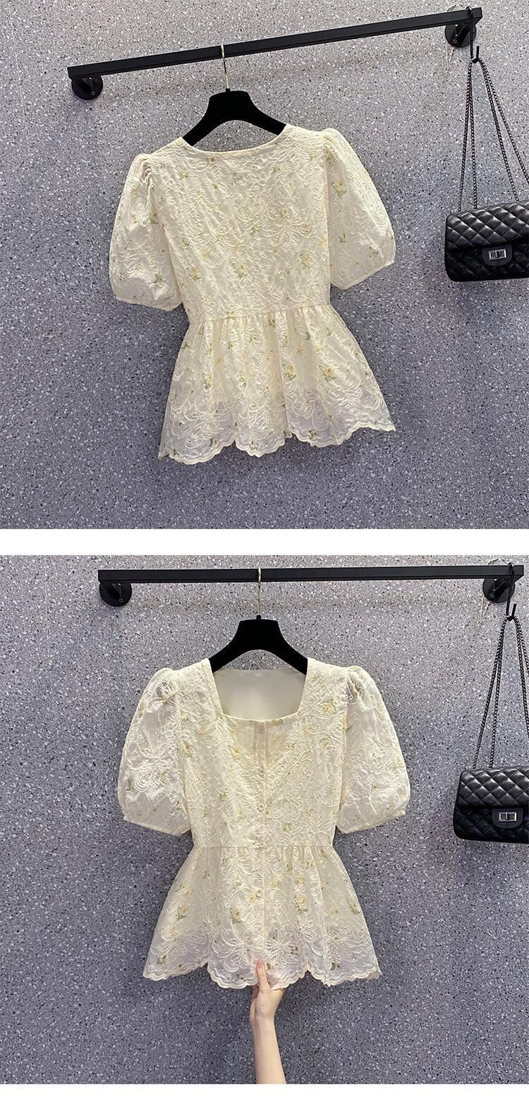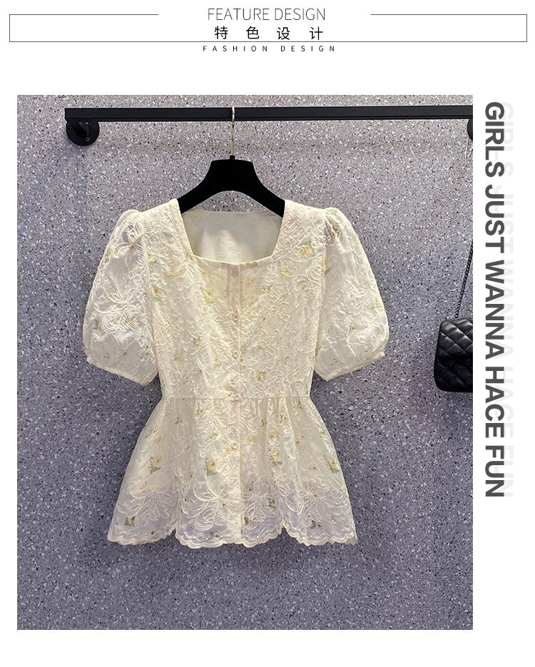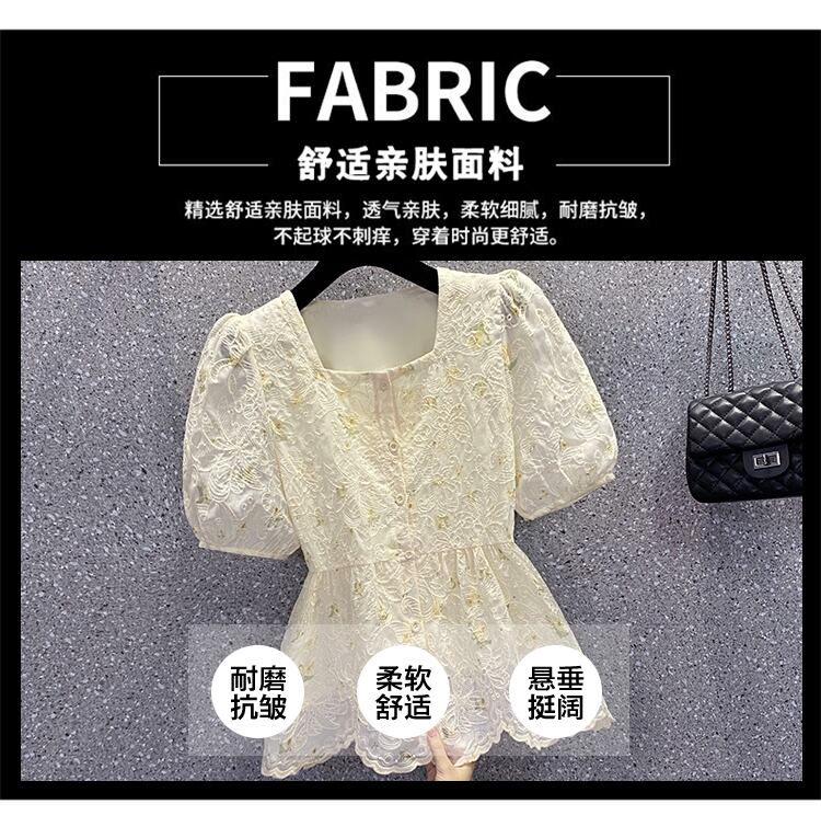 ラージサイズの婦人服2022年夏の新しいファットシスターウエストスクエアカラーフローラルデザインセンスニッチウエスタンスタイルの年齢を減らすシャツ 大きめサイズ サマー 夏物 花柄 スクウェア 8884115373077342