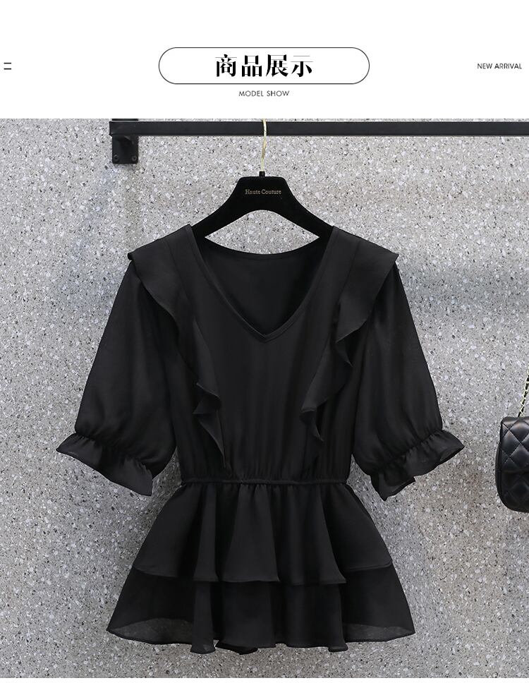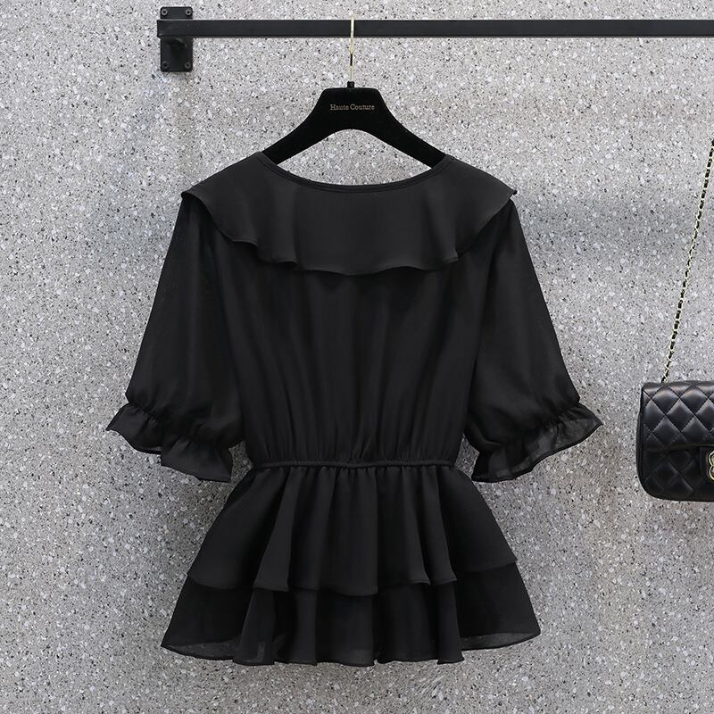 大きいサイズの婦人服2022年夏の新しい太った姉妹は薄く見え、腹を覆い、年齢と腰を減らしますフレンチVネック気質シフォンシャツ 大きめサイズ サマー 夏物 8884182425198770