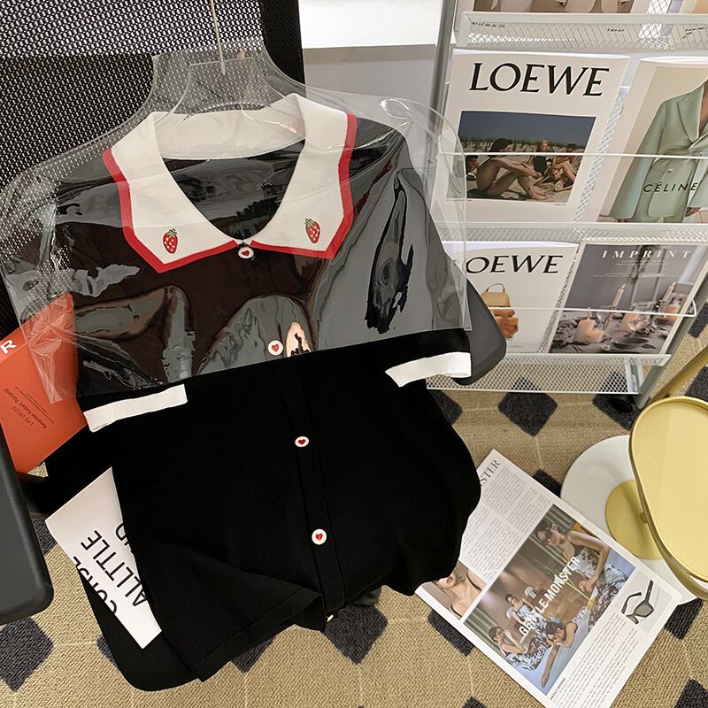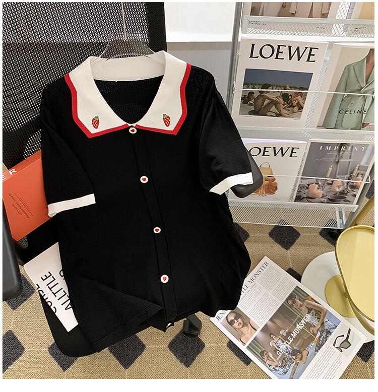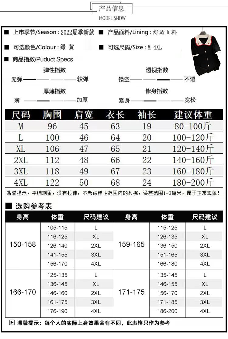 ラージサイズ婦人服2022ファットシスターサマーニューデザイン半袖ドールカラーニットセーターアイスシルクTシャツトップ 大きめサイズ 夏物 8884110266477198