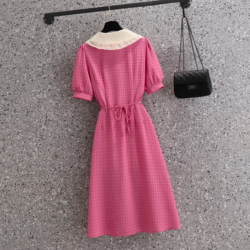 大きいサイズの婦人服2022年夏の新しい太った姉妹のカジュアルなウエストと薄い人形の襟の気質年齢を減らすドレスの女性 大きめサイズ サマー 夏物 8884111339534966