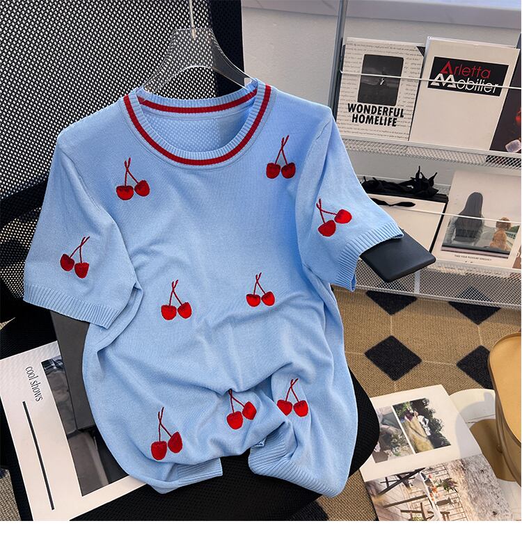 ラージサイズ婦人服2022ファットシスターサマーニューエイジリデューシングアイスシルク半袖Tシャツデザインセンスワイルドエインスタイルトップ 大きめサイズ 夏物 8884174573569783