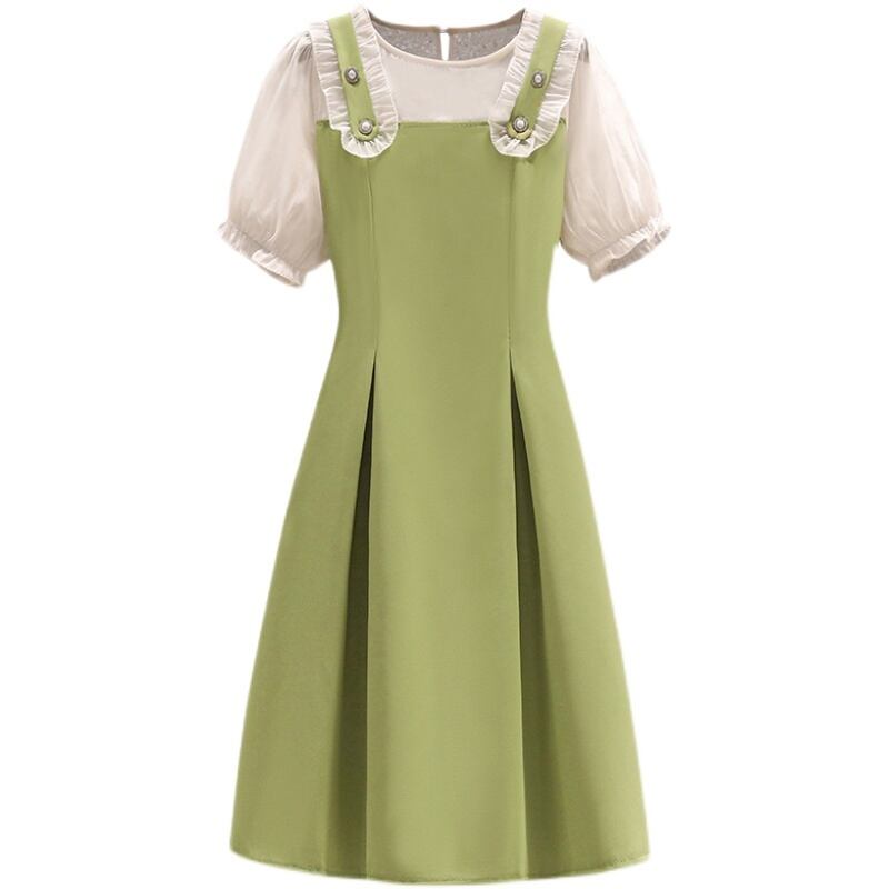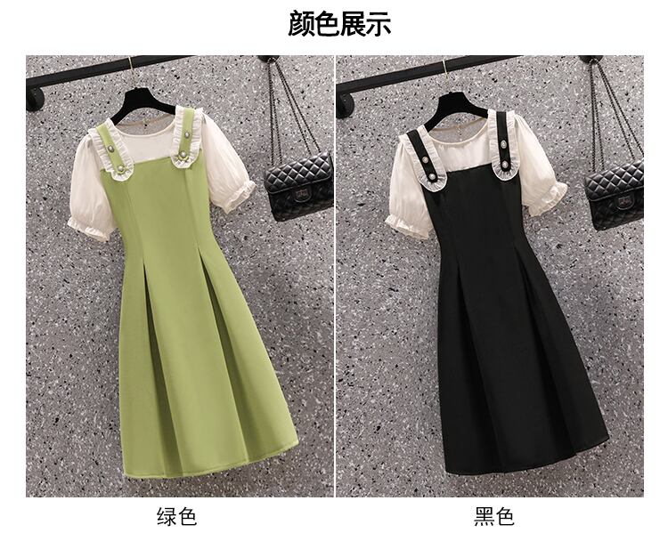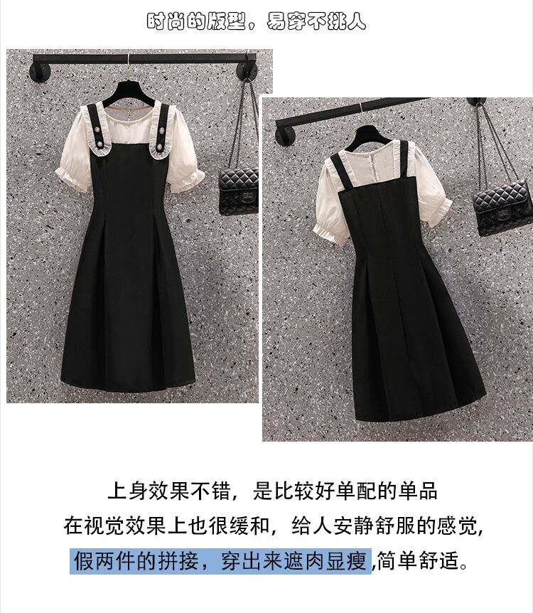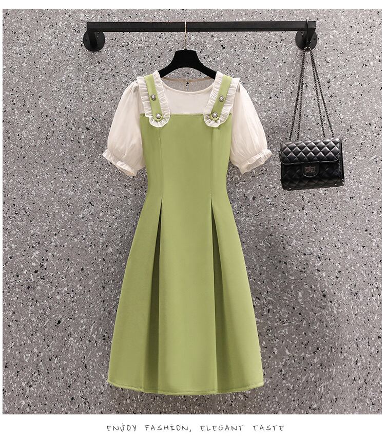 ラージサイズの婦人服2022ファットシスターサマーニューフェイクツーピースフレンチニッチウエストとスリムパフスリーブドレス 大きめサイズ 夏物 888417084516038