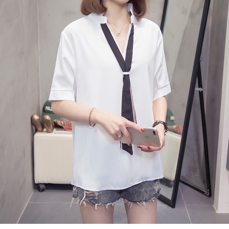 ラージサイズの婦人服2022ファットシスター夏新バージョン年齢を減らすゆるい肉を覆うシフォンシャツ半袖シャツトップ 大きめサイズ サマー 夏物 8884154300476136