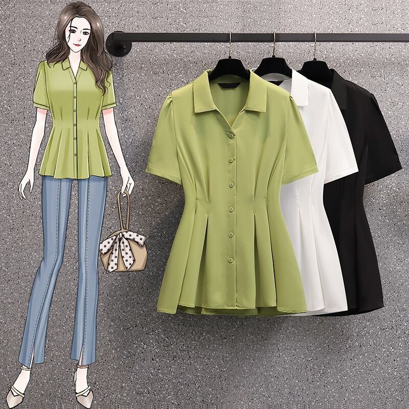 ラージサイズの婦人服2022年流行のレディースサマーニューファットシスターオールマッチシンファッションカジュアルルーズ気質肉カバーシャツ 大きめサイズ 夏物 8884195631901585
