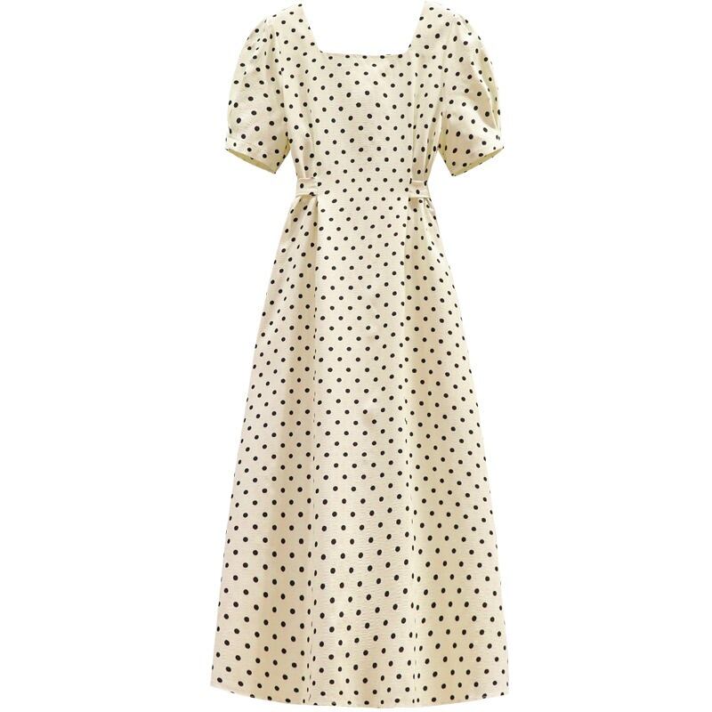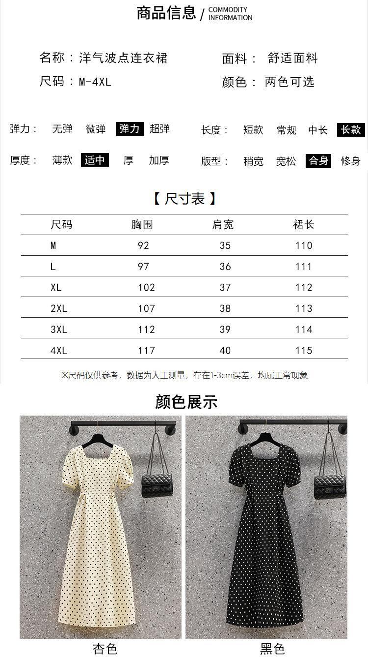 ラージサイズの婦人服2022年夏の新しいスタイルの痩身、腹を覆う、気質、ウエストを減らす、フレンチスタイルの年齢を減らすオールマッチの水玉模様のドレス 大きめサイズ サマー 夏物 8884111801638505