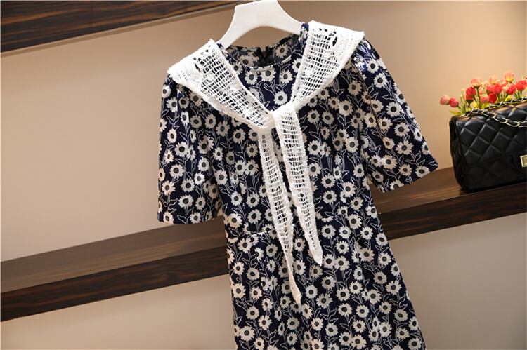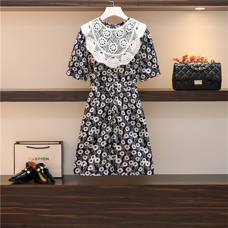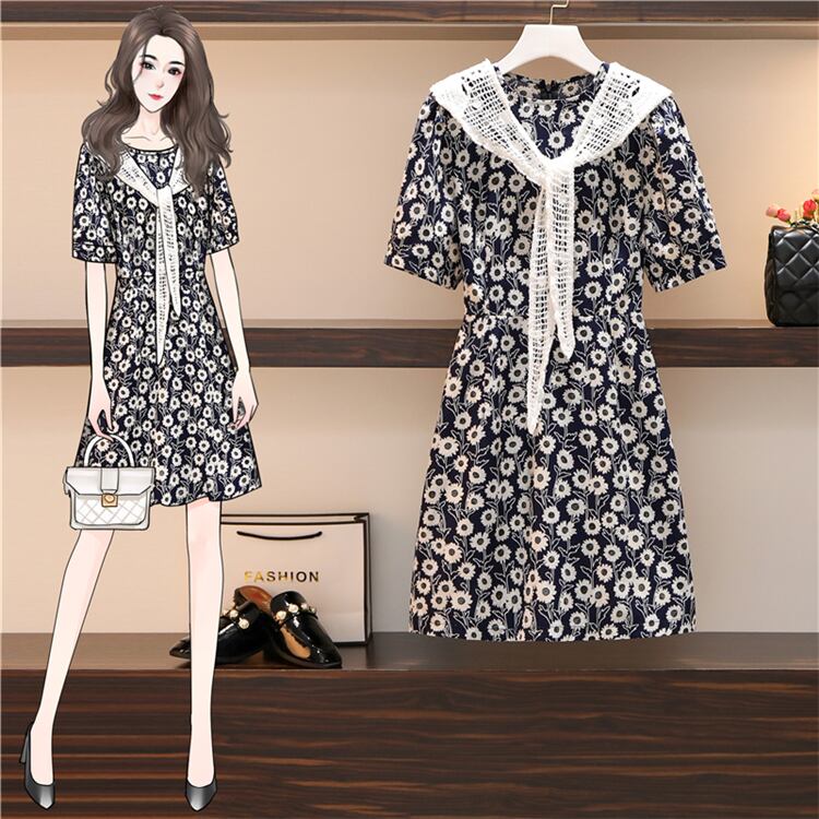 大きいサイズの婦人服2022年の太った姉妹の夏の新しい薄い半袖の花柄のドレスはレースのショールで小さく新鮮です 大きめサイズ サマー 夏物 888418530722549