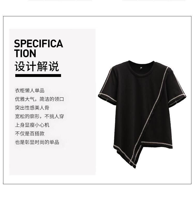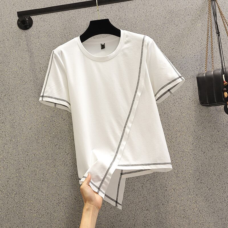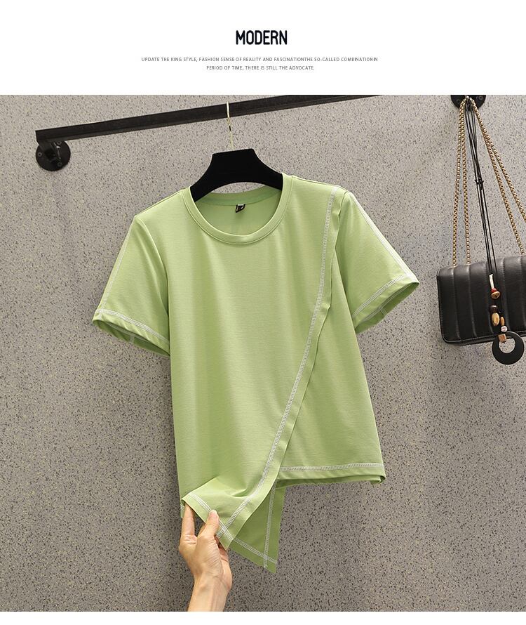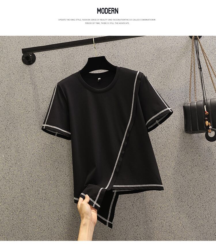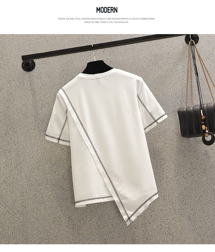 ラージサイズ婦人服2022ファットシスター夏新作ファッション不規則裾トップ薄片オールマッチ半袖Tシャツ 大きめサイズ サマー 夏物 8884185679742267
