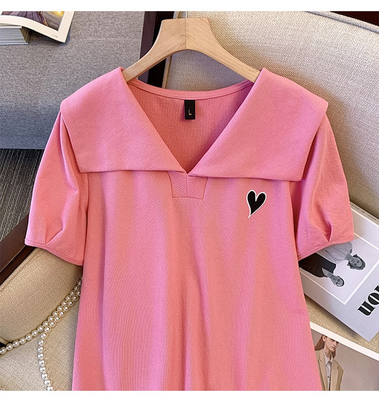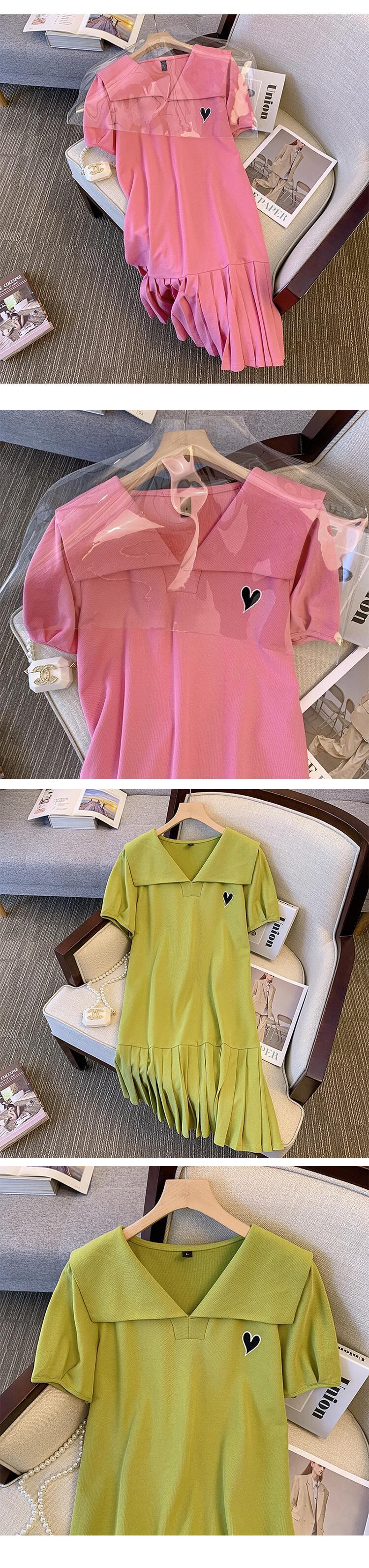 ラージサイズ婦人服2022ファットシスターサマーニューファッションスリムネイビーカラーラブ刺繍ルーズドレス 大きめサイズ 夏物 8884119084877684