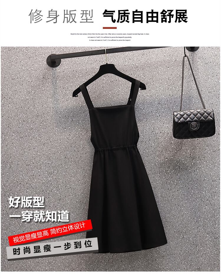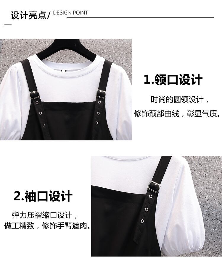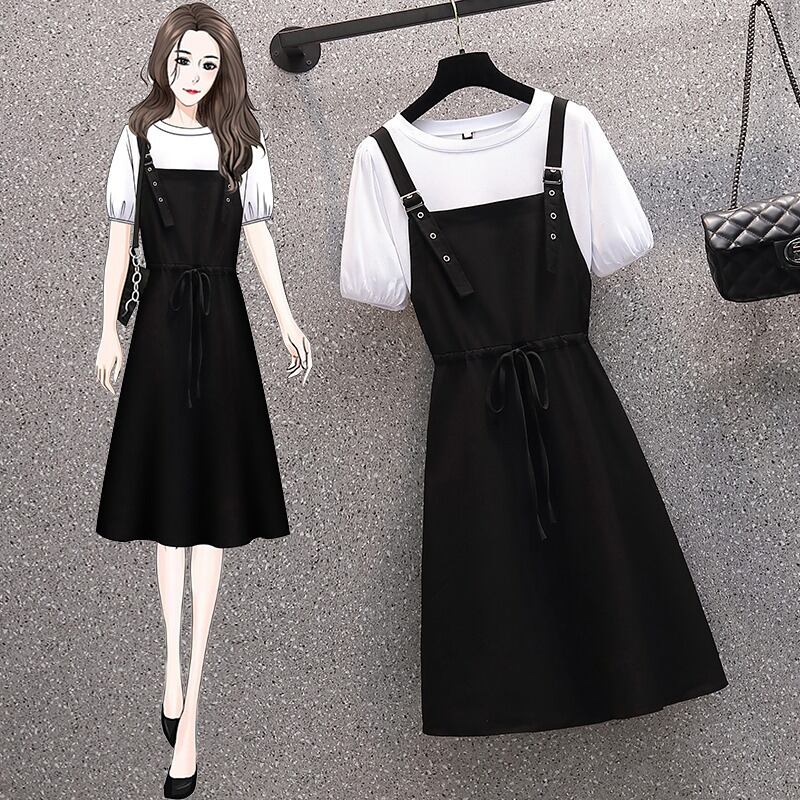 ラージサイズの婦人服2022年流行の婦人夏新作ファットシスターバージョンの肉カバーTシャツファッションストラップドレスツーピースセット 大きめサイズ サマー 夏物 8884190438287803