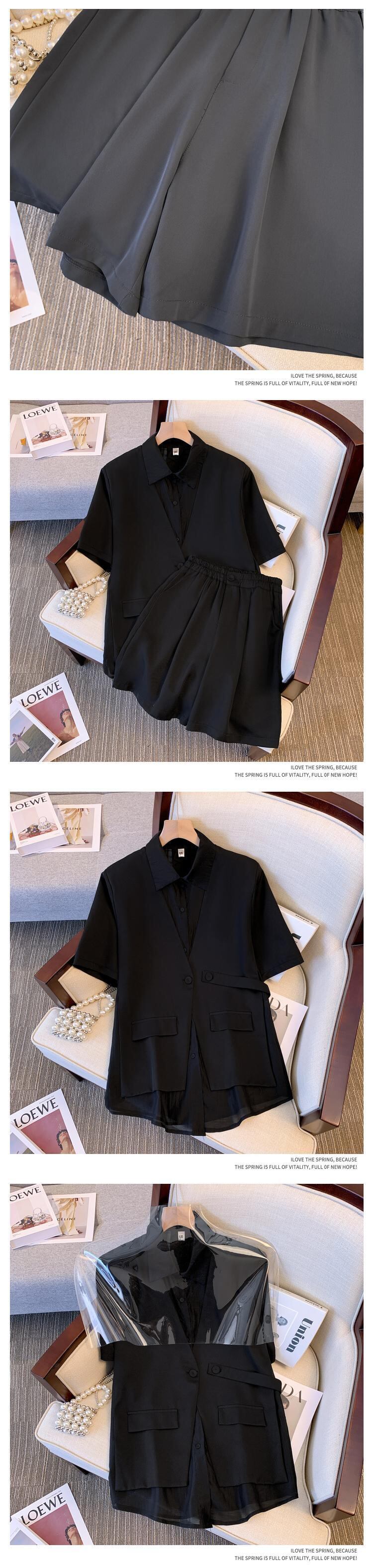 大きいサイズの婦人服 2022 夏の新しいファットシスターファッション気質トップオールマッチハイウエストカジュアルショーツ 2 点セット 大きめサイズ サマー 夏物 ブルマー 8884166270825079
