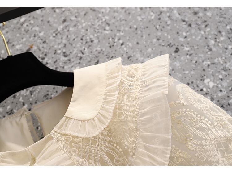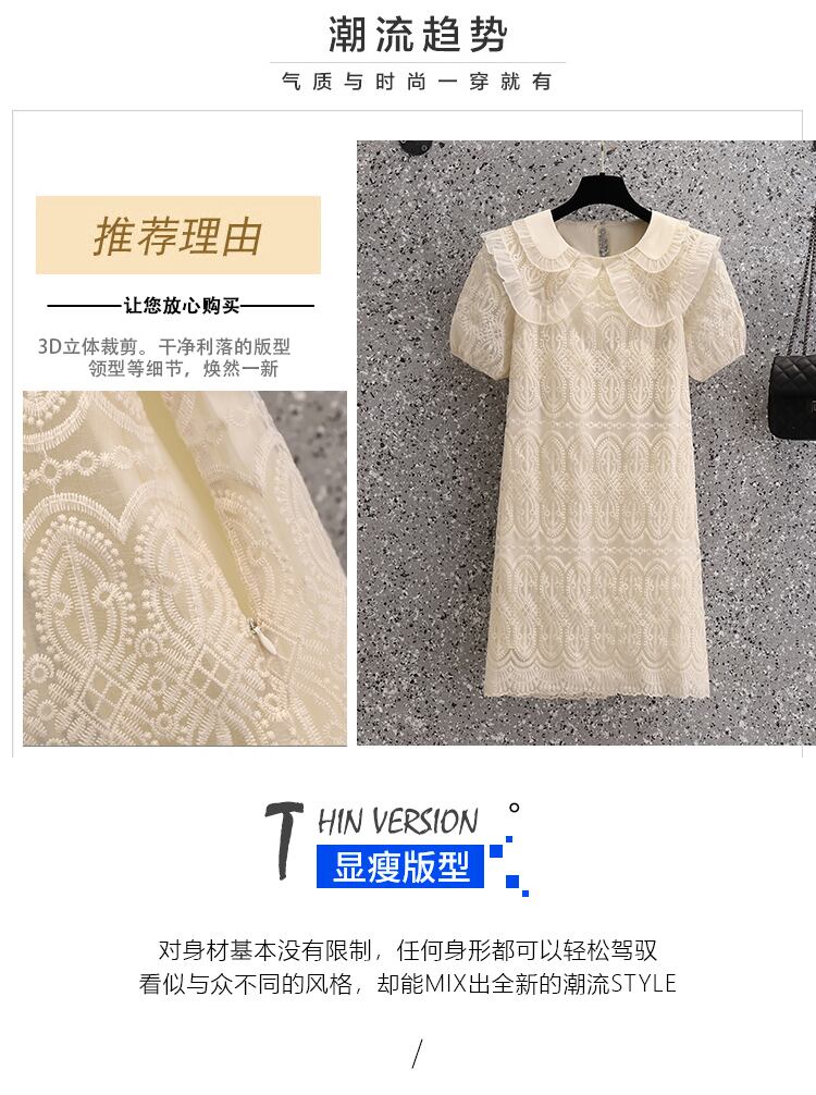 大きいサイズの婦人服 2022 ファットシスター夏の新しいフレンチ気質半袖二層人形の襟のレースのドレス 大きめサイズ サマー 夏物 8884186391701543