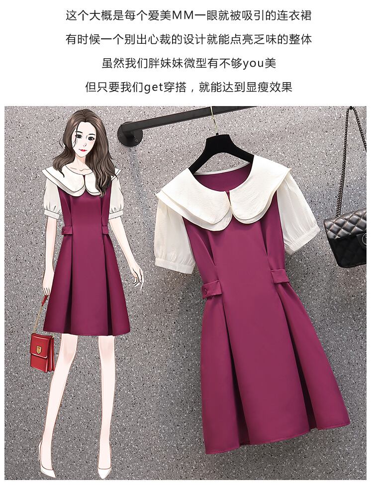 大きいサイズの婦人服 2022 トレンディな女性の夏の新しいファットシスターバージョンのフランスの蓮の葉の襟のファッション無地の年齢を減らすドレス 大きめサイズ サマー 夏物 ソリッドカラー 8884119121729918