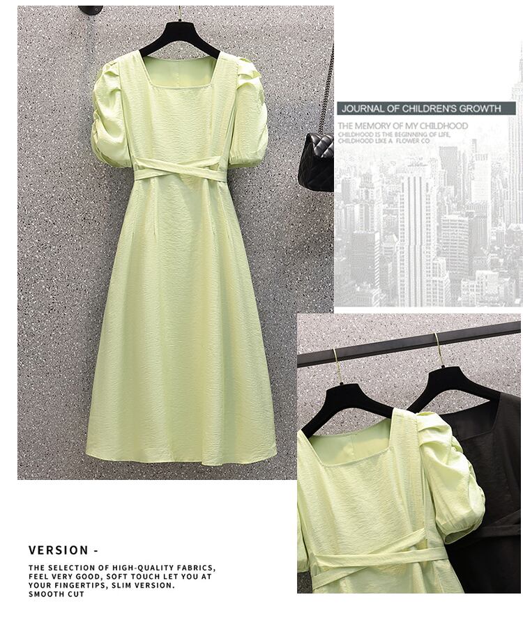 大きいサイズの婦人服2022ファットシスター夏の新しいスタイルのウエストとパイル半袖ミドル丈のファッションシンプルなドレス 大きめサイズ サマー 夏物 888411938108812