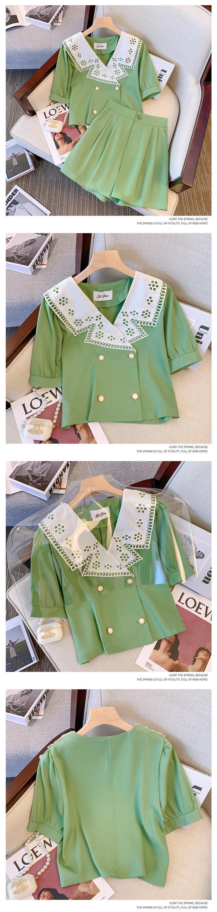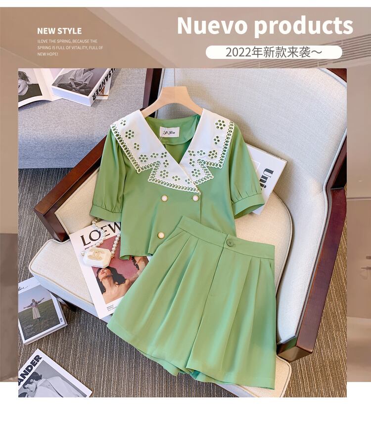 大きいサイズの婦人服 2022 夏の新しい太った姉妹の年齢を減らすデザインのトップ オールマッチ ハイウエスト カジュアル パンツ 2 点セット 大きめサイズ サマー 夏物 8884143388694700
